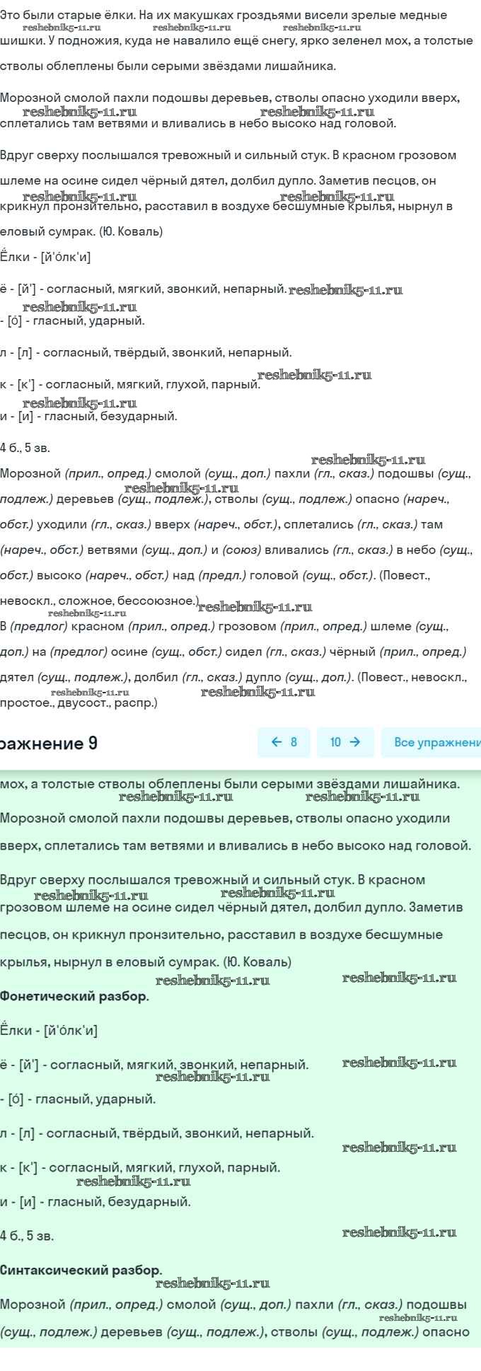 Готовая домашняя работа с ответами по Русскому языку за 7 класс Рыбченкова, Александрова, Загоровская, Нарушевич, Вакурова Учебник Просвещение 2016 ФГОС - Упражнения 9