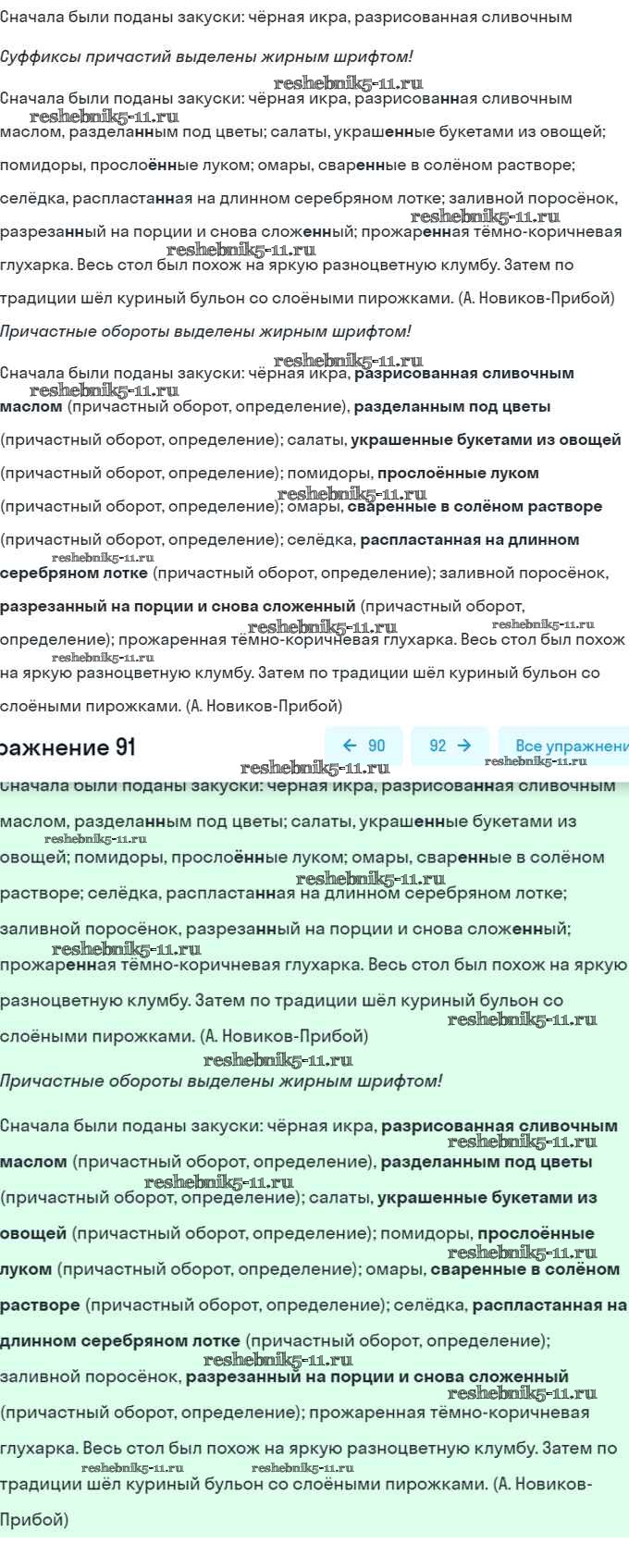 Готовая домашняя работа с ответами по Русскому языку за 7 класс Рыбченкова, Александрова, Загоровская, Нарушевич, Вакурова Учебник Просвещение 2016 ФГОС - Упражнения 91