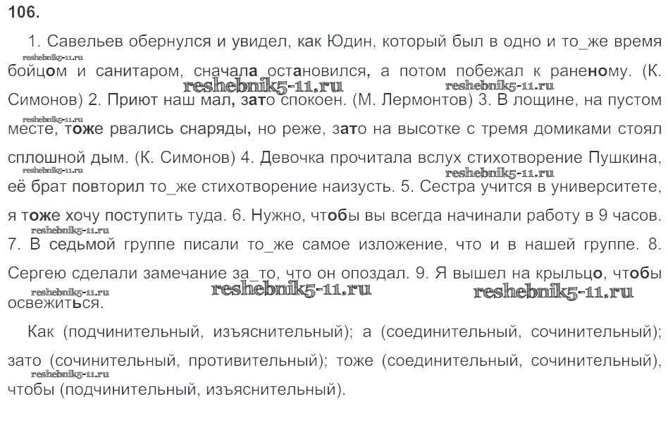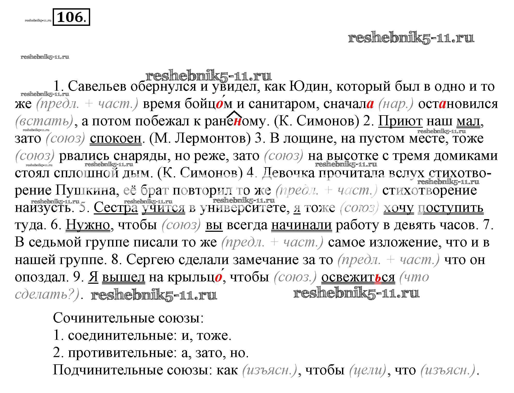 Готовая домашняя работа с ответами по Русскому языку за 7 класс Ефремова, Баранова, Ладыженская, Тростенцова Рабочая тетрадь УМК Просвещение 2017 ФГОС - Упражнения 106