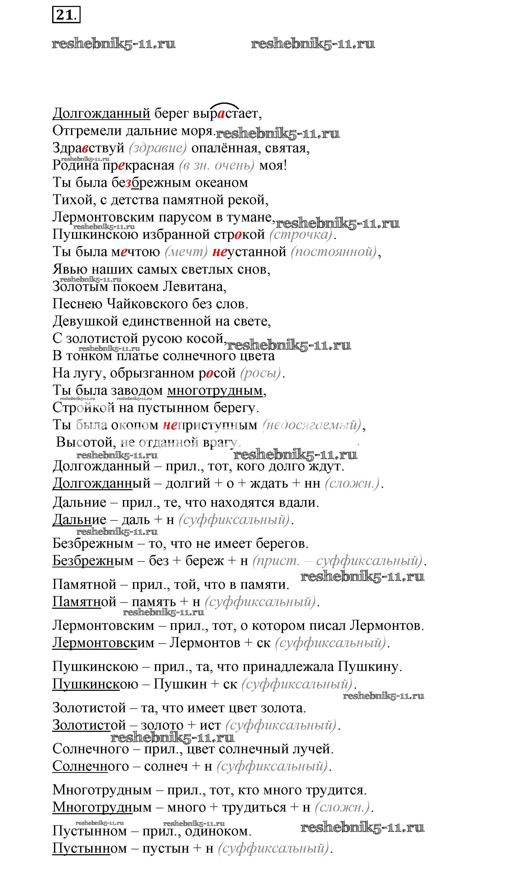 Готовая домашняя работа с ответами по Русскому языку за 7 класс Ефремова, Баранова, Ладыженская, Тростенцова Рабочая тетрадь УМК Просвещение 2017 ФГОС - Упражнения 21