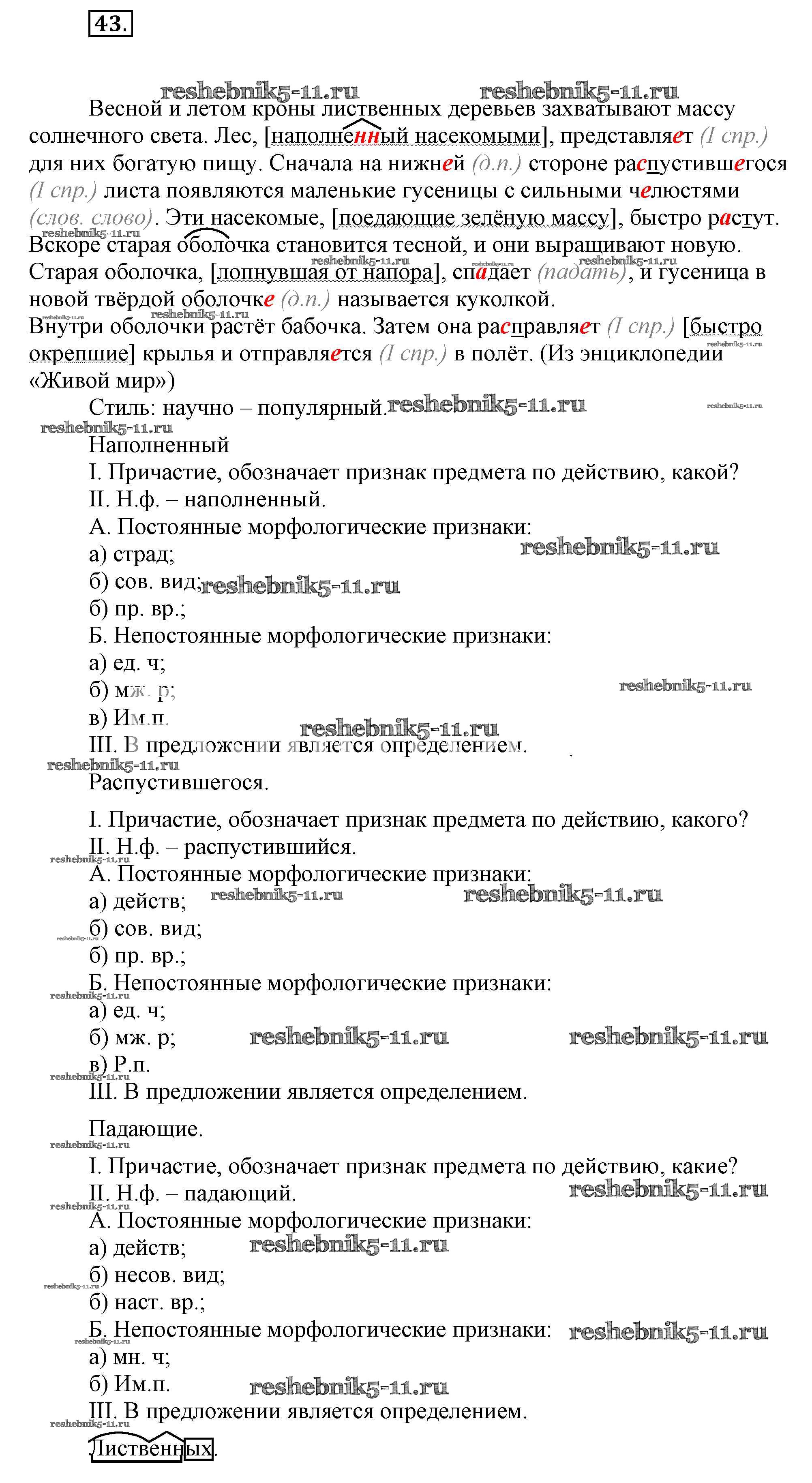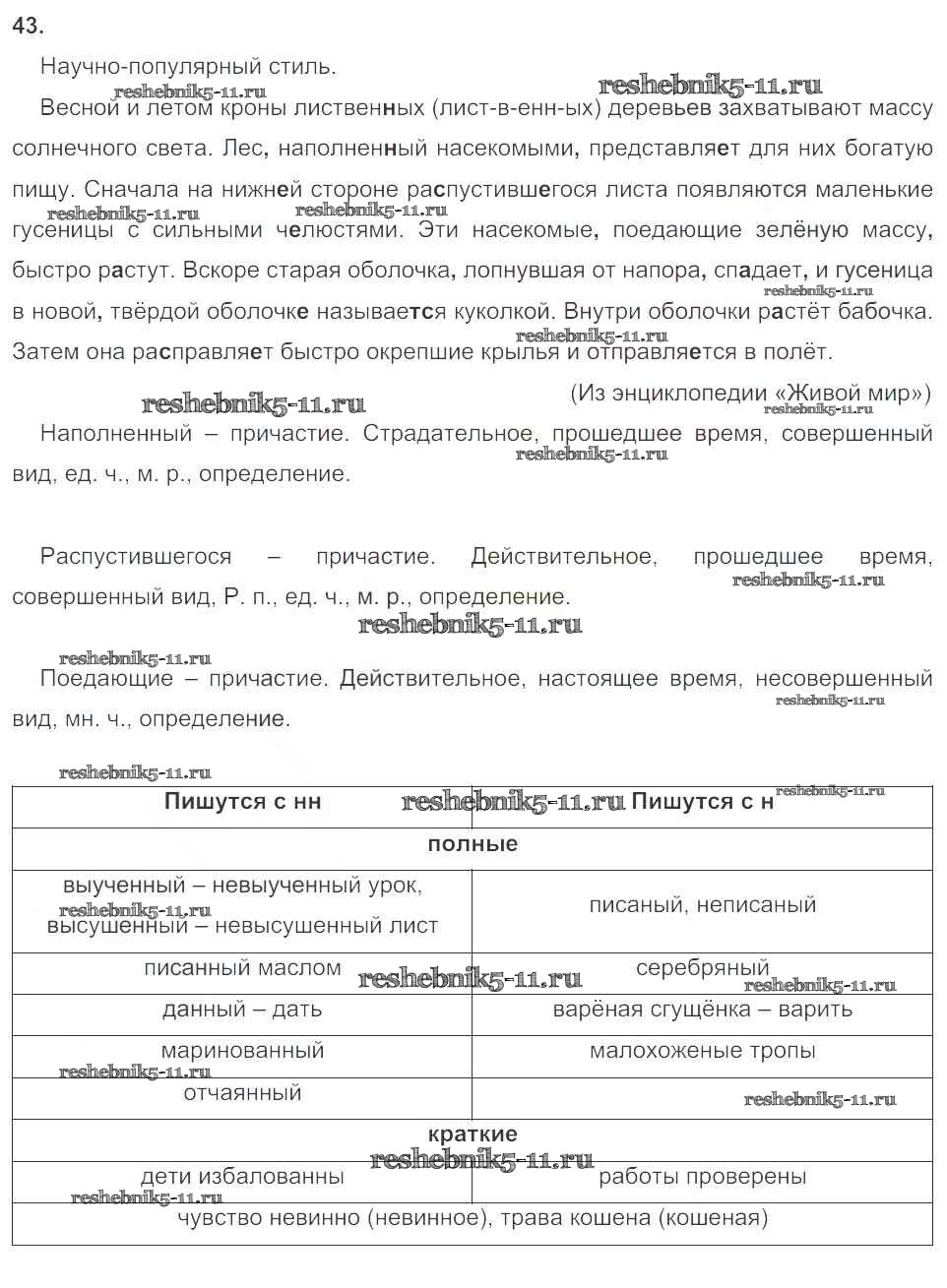 Готовая домашняя работа с ответами по Русскому языку за 7 класс Ефремова, Баранова, Ладыженская, Тростенцова Рабочая тетрадь УМК Просвещение 2017 ФГОС - Упражнения 43