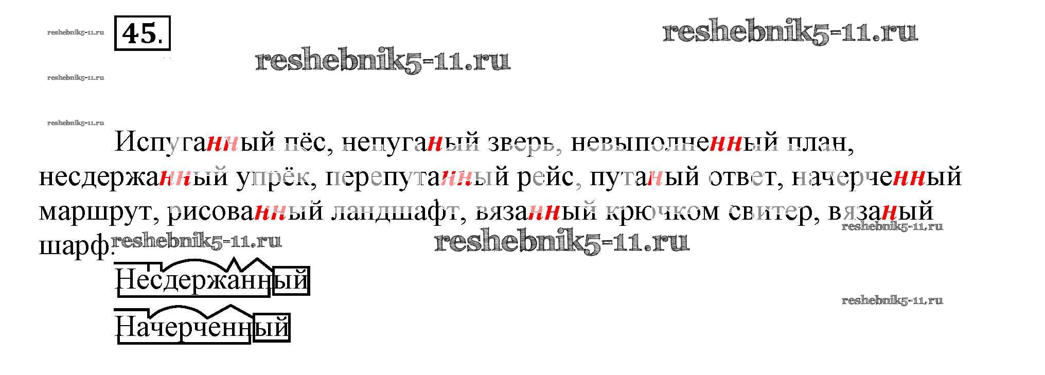 Готовая домашняя работа с ответами по Русскому языку за 7 класс Ефремова, Баранова, Ладыженская, Тростенцова Рабочая тетрадь УМК Просвещение 2017 ФГОС - Упражнения 45