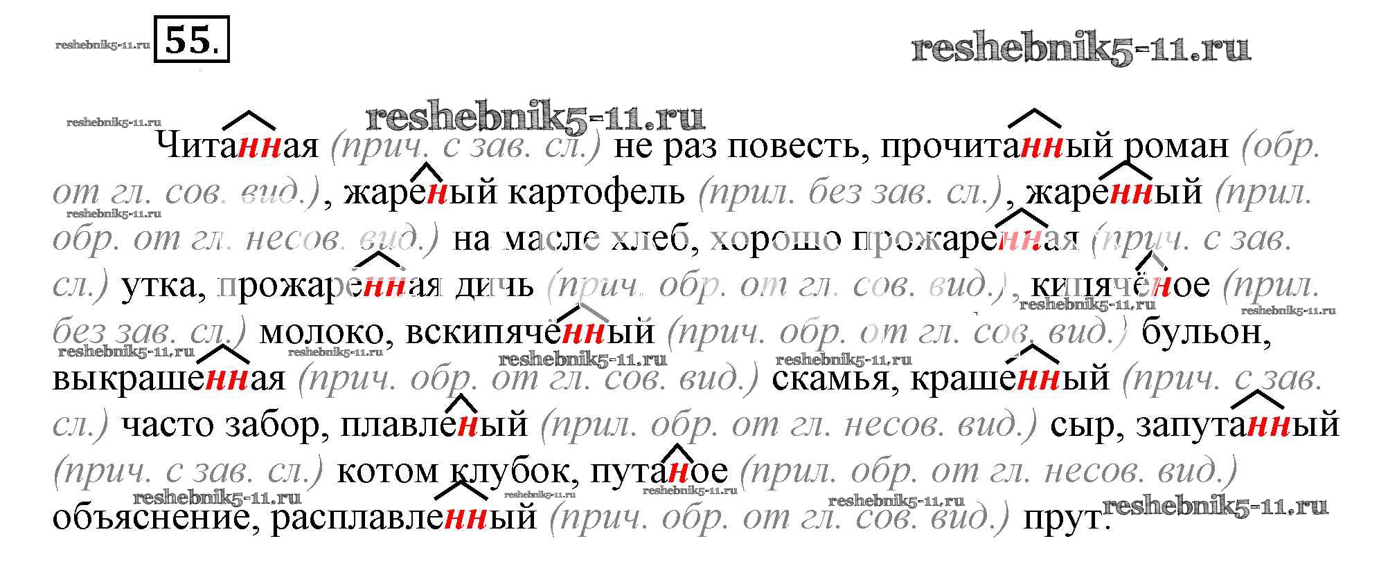 Готовая домашняя работа с ответами по Русскому языку за 7 класс Ефремова, Баранова, Ладыженская, Тростенцова Рабочая тетрадь УМК Просвещение 2017 ФГОС - Упражнения 55