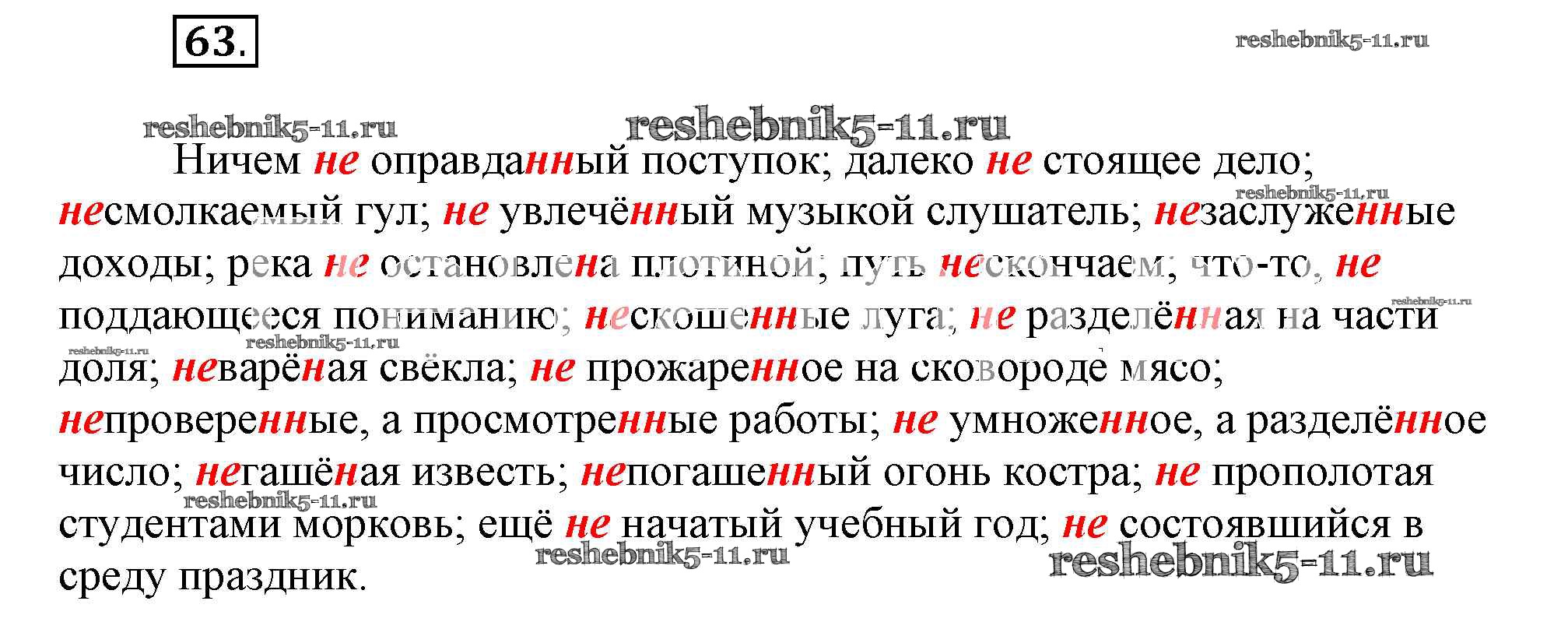 Готовая домашняя работа с ответами по Русскому языку за 7 класс Ефремова, Баранова, Ладыженская, Тростенцова Рабочая тетрадь УМК Просвещение 2017 ФГОС - Упражнения 63