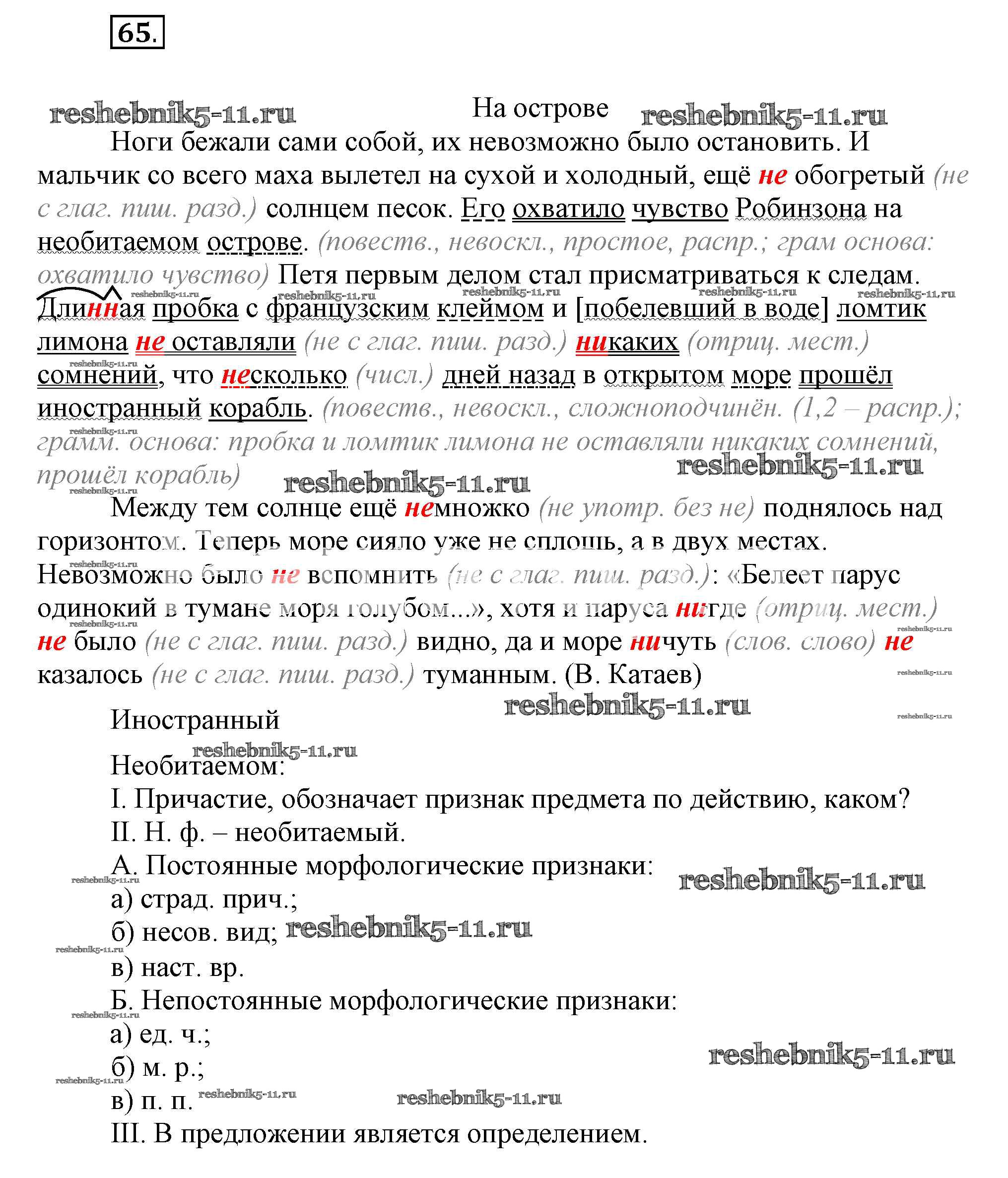 Готовая домашняя работа с ответами по Русскому языку за 7 класс Ефремова, Баранова, Ладыженская, Тростенцова Рабочая тетрадь УМК Просвещение 2017 ФГОС - Упражнения 65