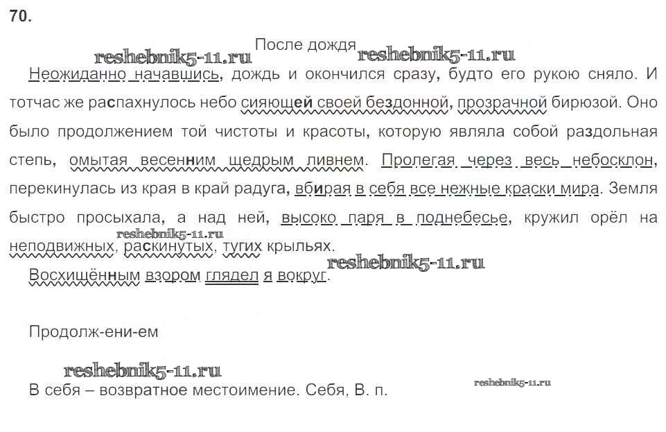 Готовая домашняя работа с ответами по Русскому языку за 7 класс Ефремова, Баранова, Ладыженская, Тростенцова Рабочая тетрадь УМК Просвещение 2017 ФГОС - Упражнения 70