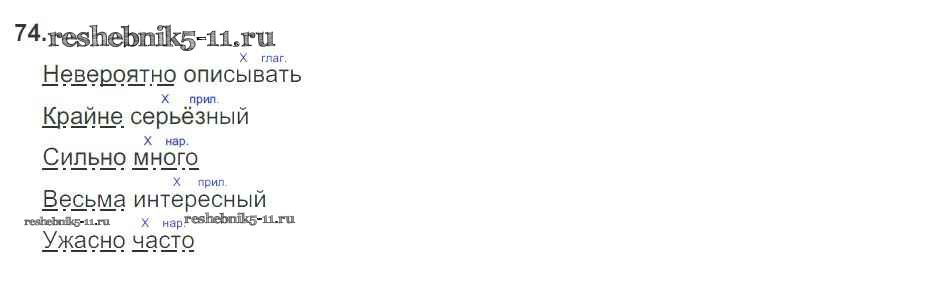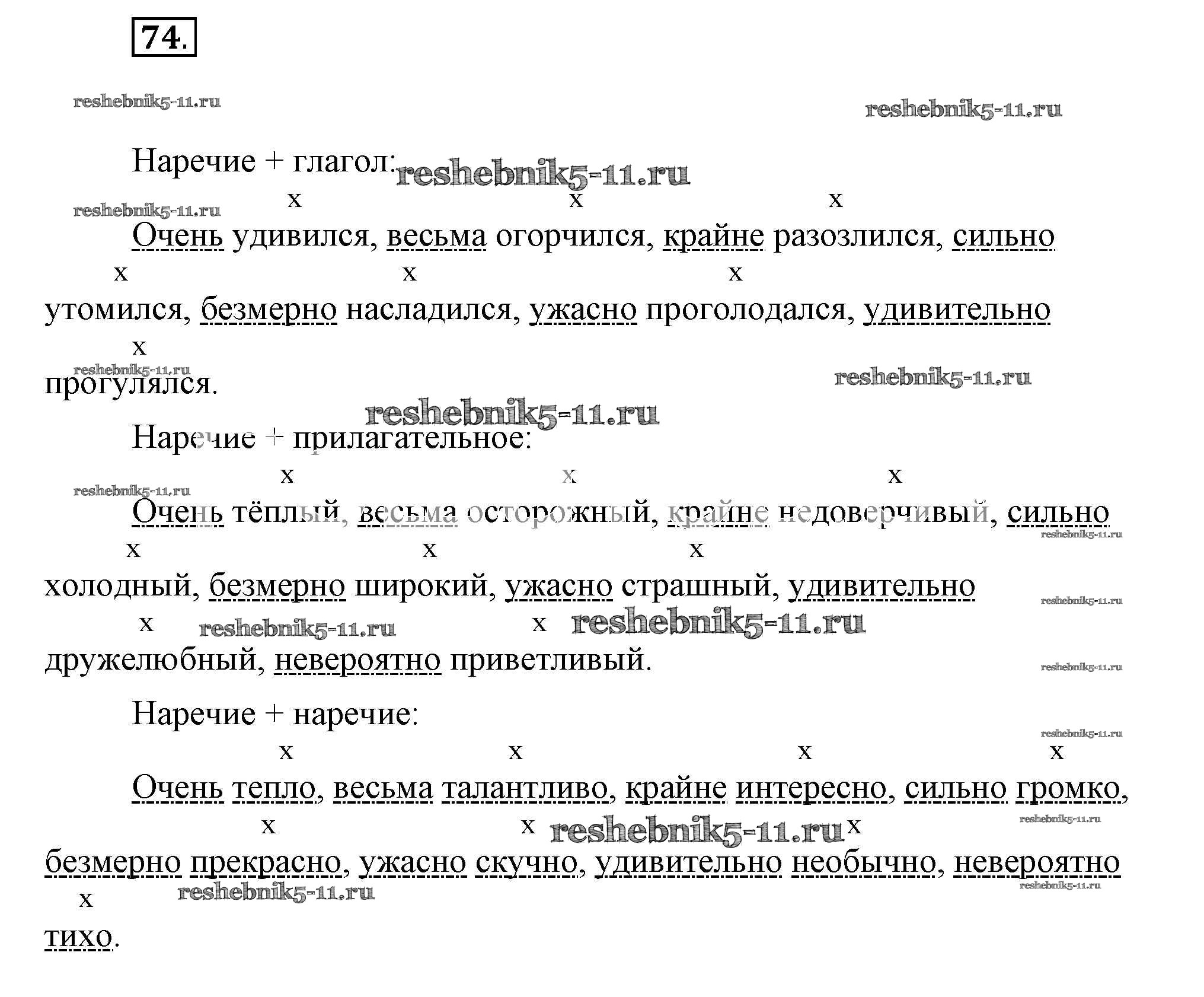 Готовая домашняя работа с ответами по Русскому языку за 7 класс Ефремова, Баранова, Ладыженская, Тростенцова Рабочая тетрадь УМК Просвещение 2017 ФГОС - Упражнения 74
