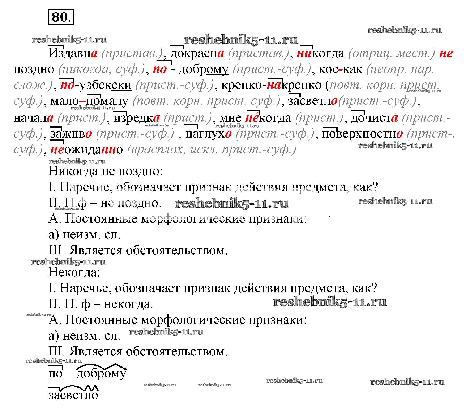 Готовая домашняя работа с ответами по Русскому языку за 7 класс Ефремова, Баранова, Ладыженская, Тростенцова Рабочая тетрадь УМК Просвещение 2017 ФГОС - Упражнения 80