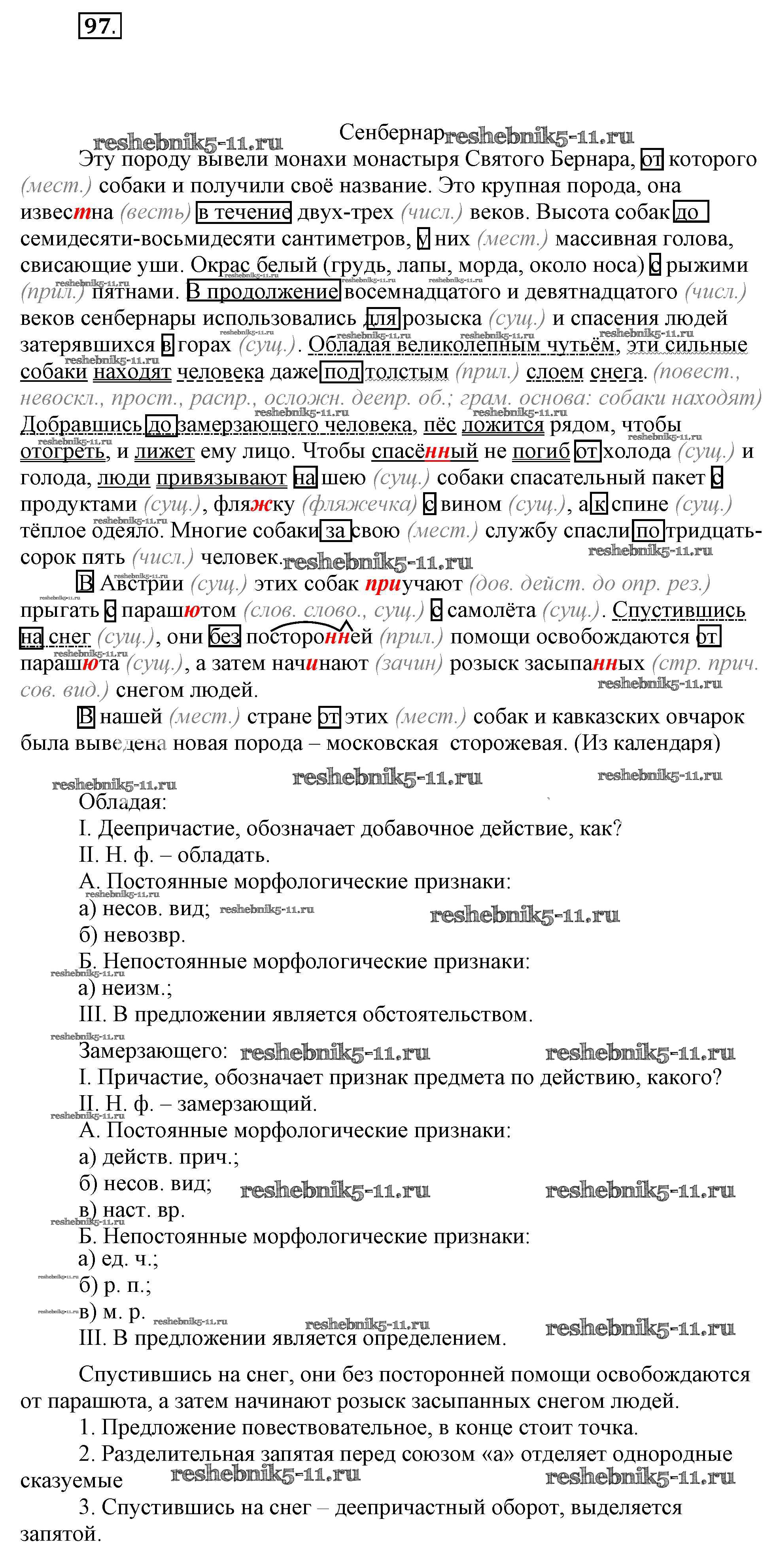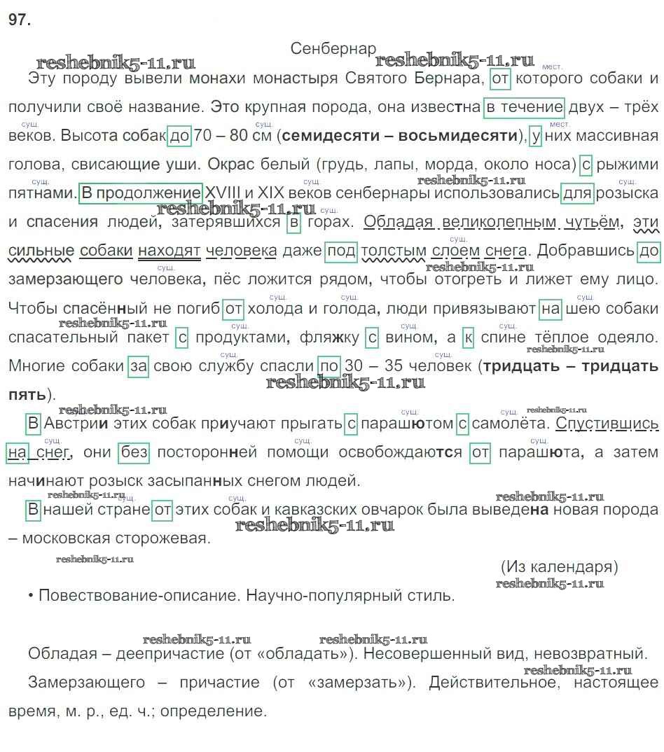 Готовая домашняя работа с ответами по Русскому языку за 7 класс Ефремова, Баранова, Ладыженская, Тростенцова Рабочая тетрадь УМК Просвещение 2017 ФГОС - Упражнения 97
