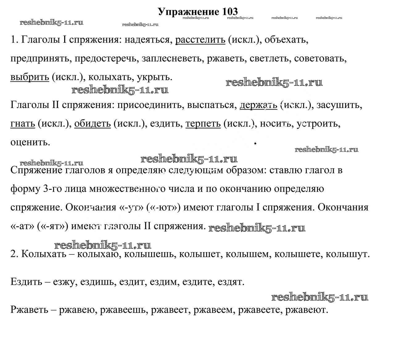 Готовая домашняя работа с ответами по Русскому языку за 7 класс Мурина, Волынец, Долбик Учебник Национальный институт образования 2015 ФГОС - Упражнения 103