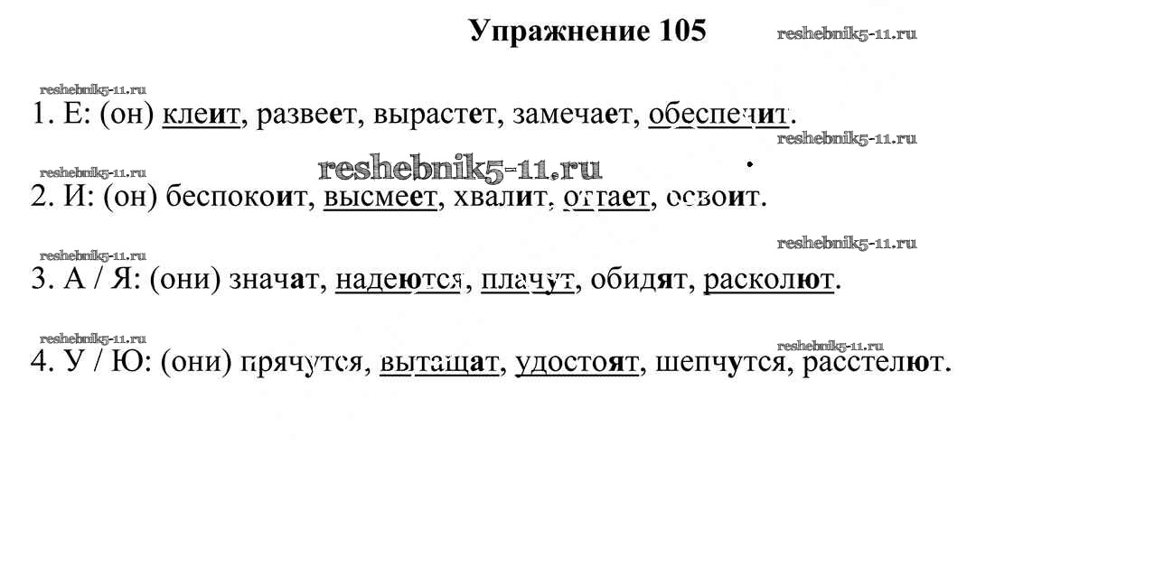 Готовая домашняя работа с ответами по Русскому языку за 7 класс Мурина, Волынец, Долбик Учебник Национальный институт образования 2015 ФГОС - Упражнения 105