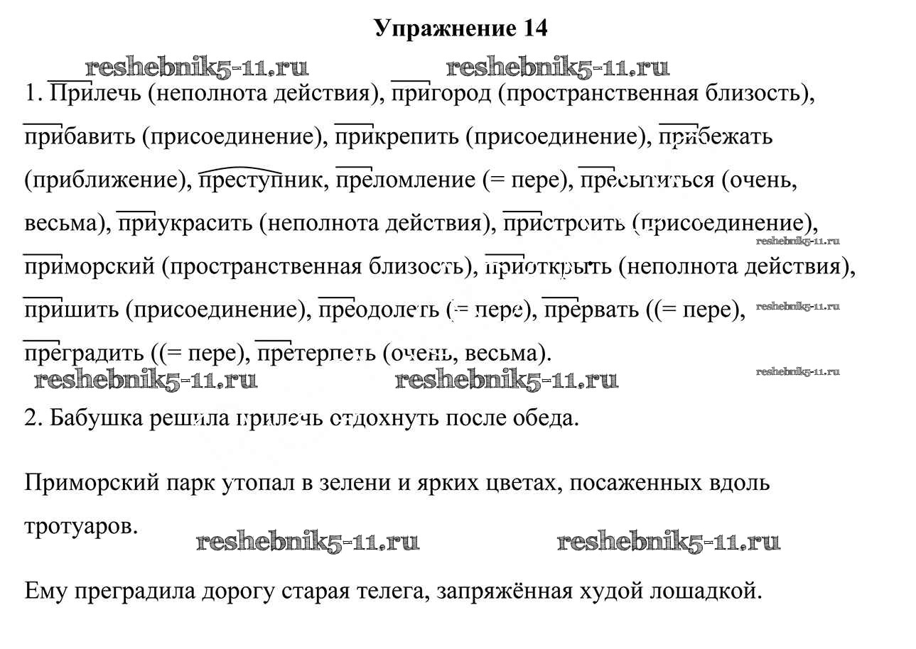 Готовая домашняя работа с ответами по Русскому языку за 7 класс Мурина, Волынец, Долбик Учебник Национальный институт образования 2015 ФГОС - Упражнения 14