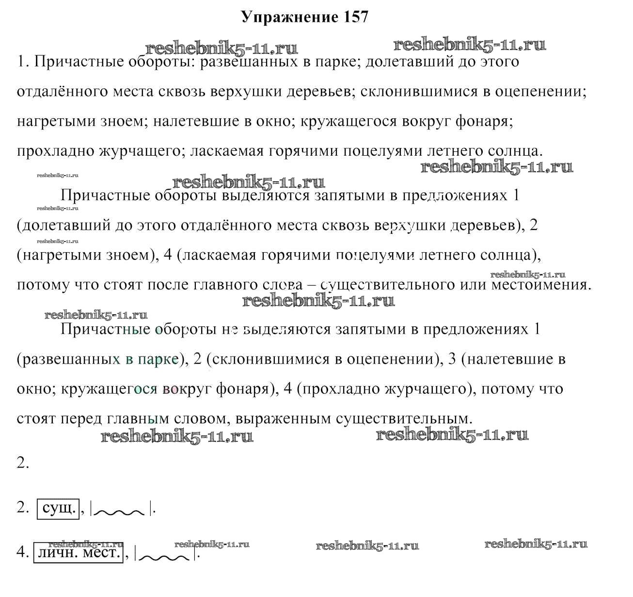 Готовая домашняя работа с ответами по Русскому языку за 7 класс Мурина, Волынец, Долбик Учебник Национальный институт образования 2015 ФГОС - Упражнения 157