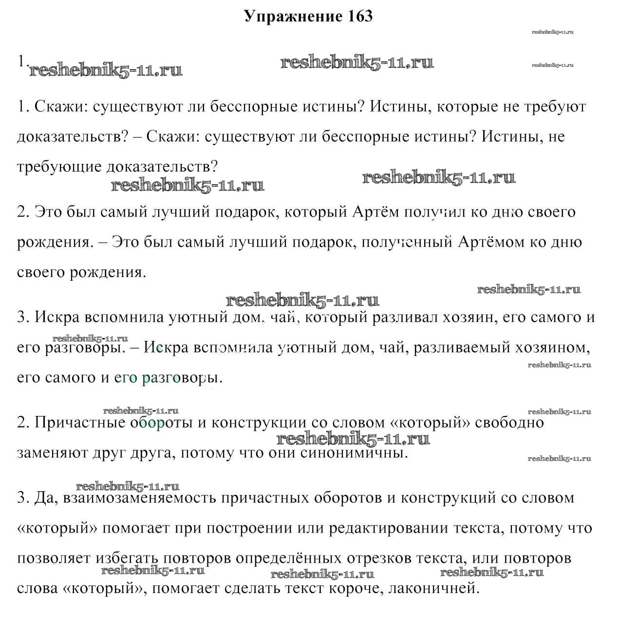 Готовая домашняя работа с ответами по Русскому языку за 7 класс Мурина, Волынец, Долбик Учебник Национальный институт образования 2015 ФГОС - Упражнения 163