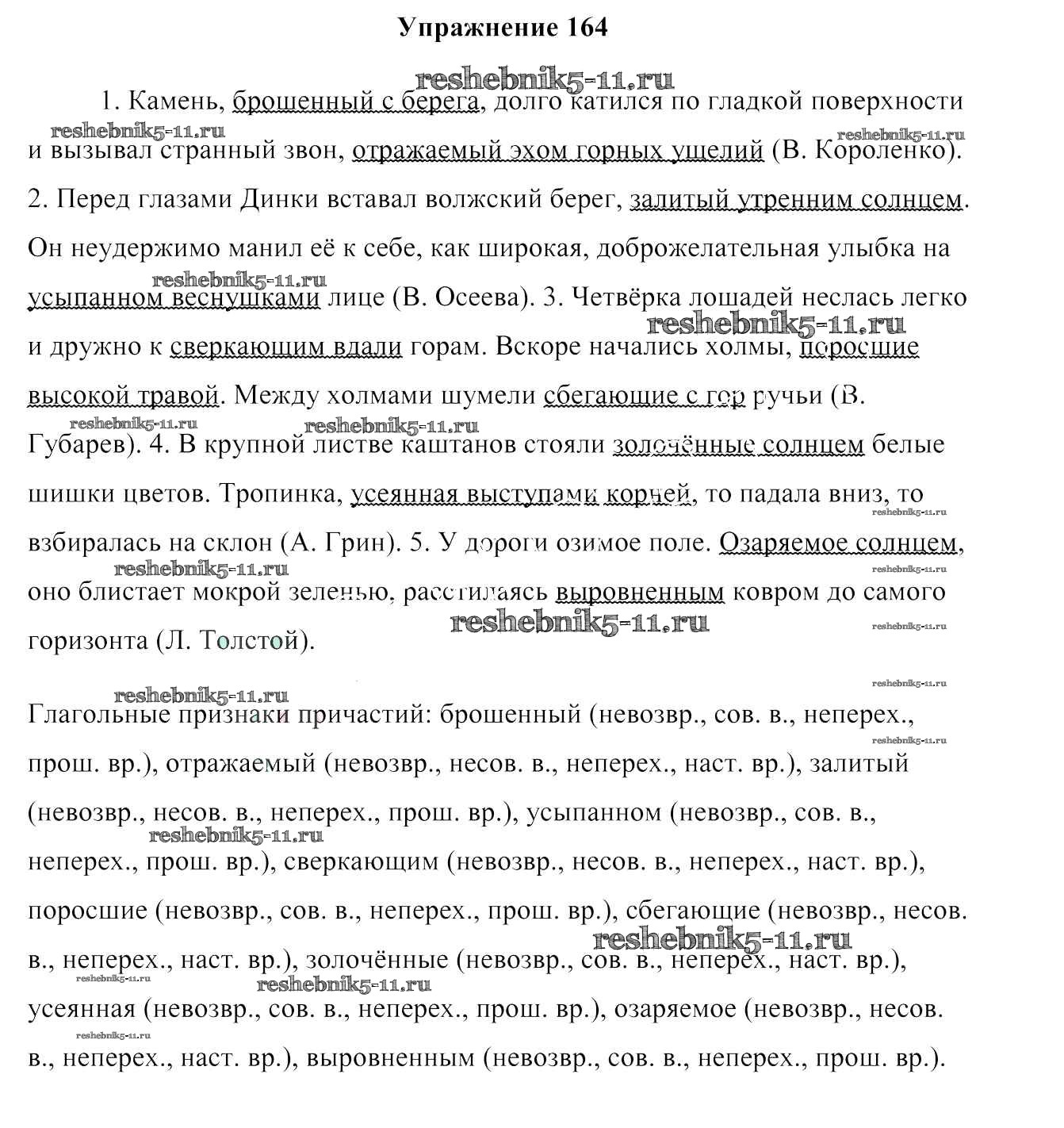 Готовая домашняя работа с ответами по Русскому языку за 7 класс Мурина, Волынец, Долбик Учебник Национальный институт образования 2015 ФГОС - Упражнения 164
