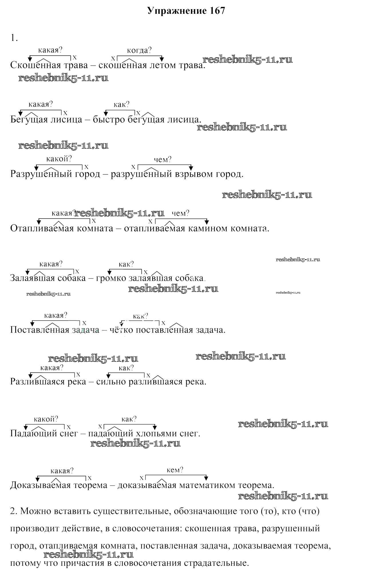 Готовая домашняя работа с ответами по Русскому языку за 7 класс Мурина, Волынец, Долбик Учебник Национальный институт образования 2015 ФГОС - Упражнения 167