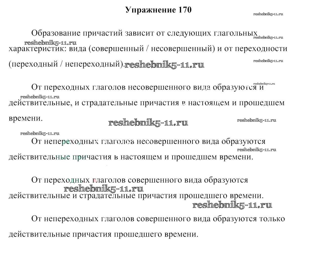 Готовая домашняя работа с ответами по Русскому языку за 7 класс Мурина, Волынец, Долбик Учебник Национальный институт образования 2015 ФГОС - Упражнения 170