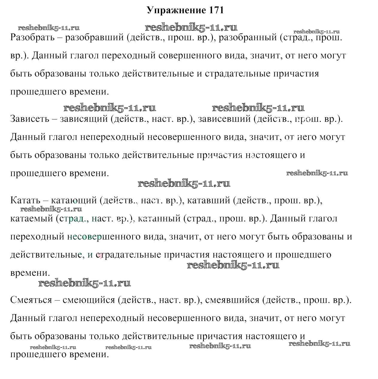 Готовая домашняя работа с ответами по Русскому языку за 7 класс Мурина, Волынец, Долбик Учебник Национальный институт образования 2015 ФГОС - Упражнения 171