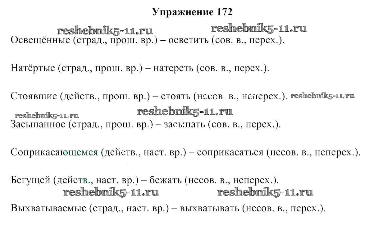 Готовая домашняя работа с ответами по Русскому языку за 7 класс Мурина, Волынец, Долбик Учебник Национальный институт образования 2015 ФГОС - Упражнения 172