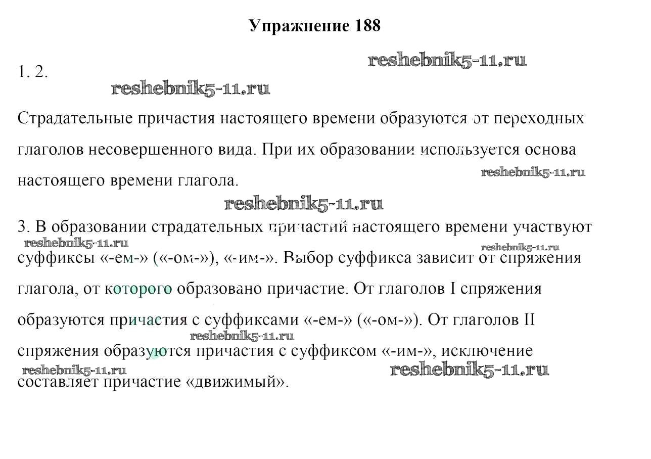 Готовая домашняя работа с ответами по Русскому языку за 7 класс Мурина, Волынец, Долбик Учебник Национальный институт образования 2015 ФГОС - Упражнения 188