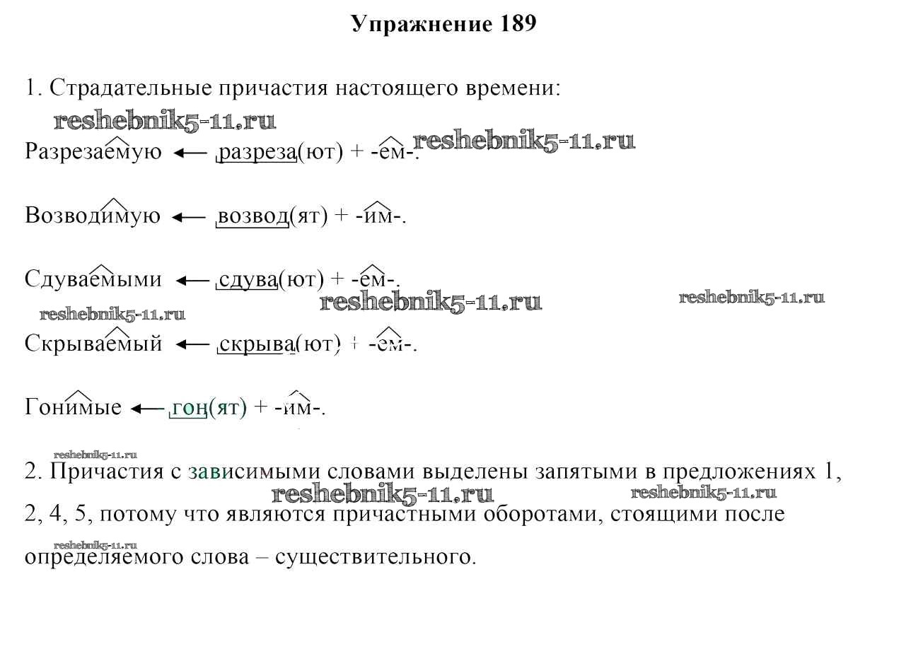 Готовая домашняя работа с ответами по Русскому языку за 7 класс Мурина, Волынец, Долбик Учебник Национальный институт образования 2015 ФГОС - Упражнения 189