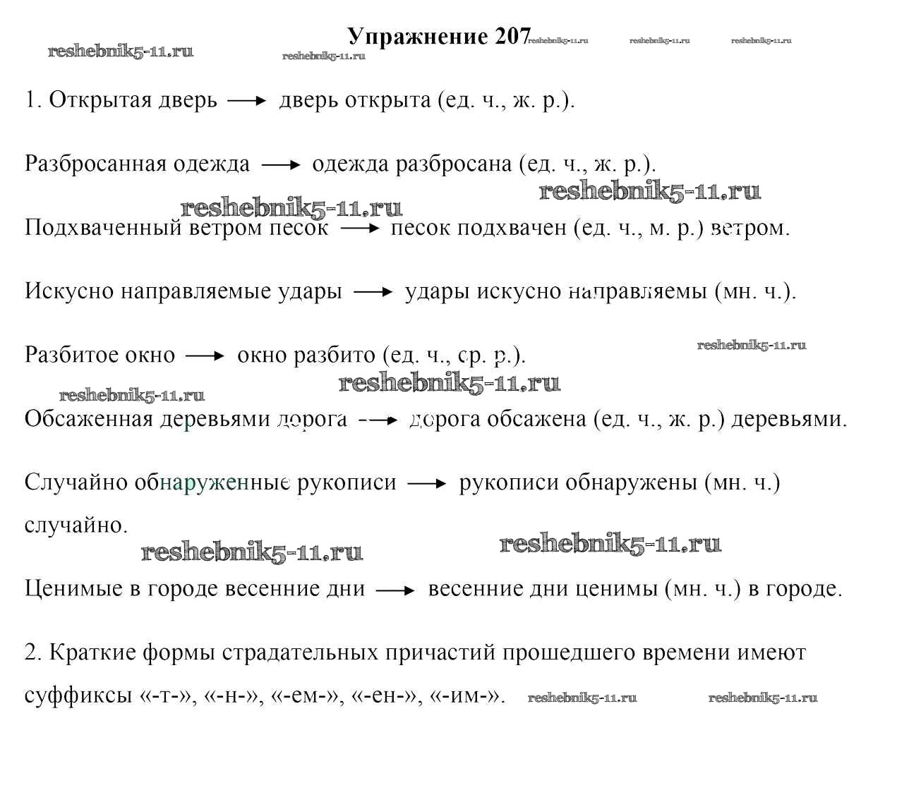 Готовая домашняя работа с ответами по Русскому языку за 7 класс Мурина, Волынец, Долбик Учебник Национальный институт образования 2015 ФГОС - Упражнения 207