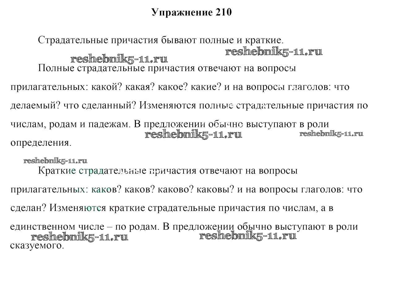Готовая домашняя работа с ответами по Русскому языку за 7 класс Мурина, Волынец, Долбик Учебник Национальный институт образования 2015 ФГОС - Упражнения 210