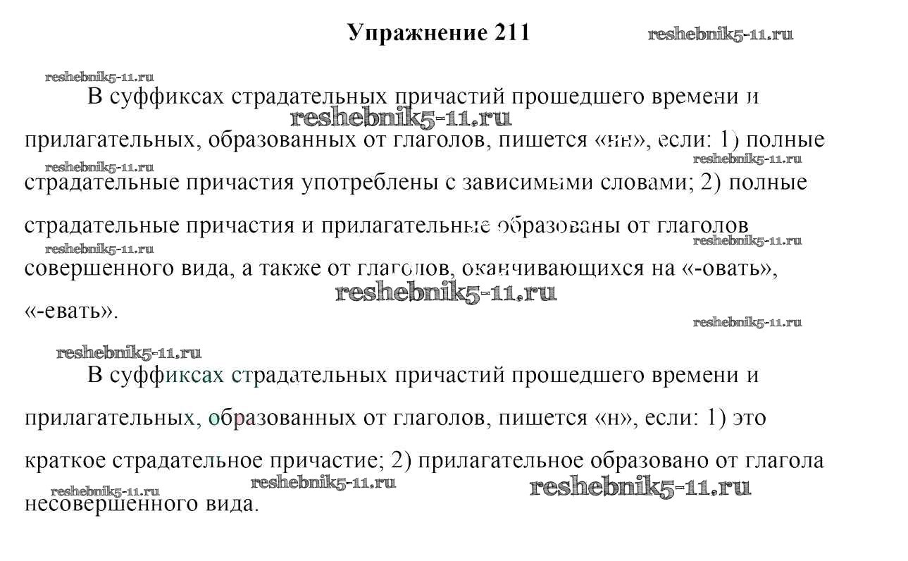 Готовая домашняя работа с ответами по Русскому языку за 7 класс Мурина, Волынец, Долбик Учебник Национальный институт образования 2015 ФГОС - Упражнения 211