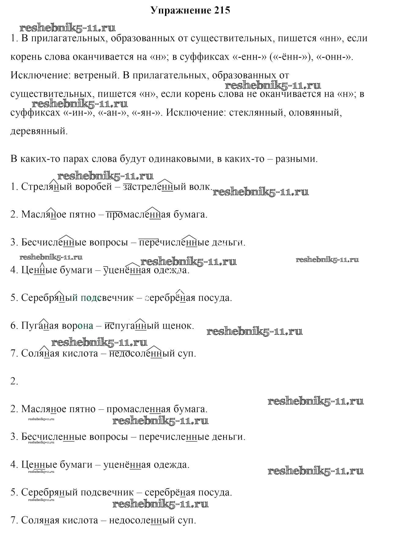 Готовая домашняя работа с ответами по Русскому языку за 7 класс Мурина, Волынец, Долбик Учебник Национальный институт образования 2015 ФГОС - Упражнения 215