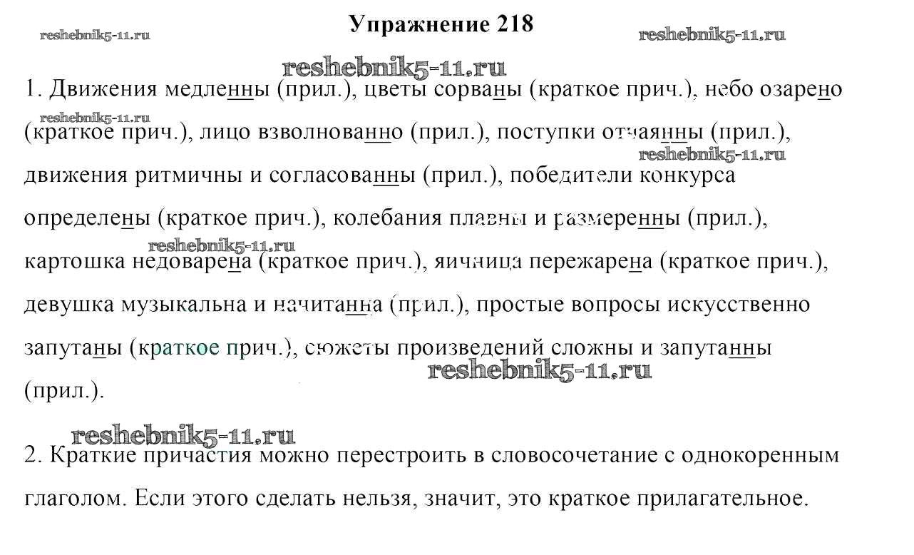 Готовая домашняя работа с ответами по Русскому языку за 7 класс Мурина, Волынец, Долбик Учебник Национальный институт образования 2015 ФГОС - Упражнения 218