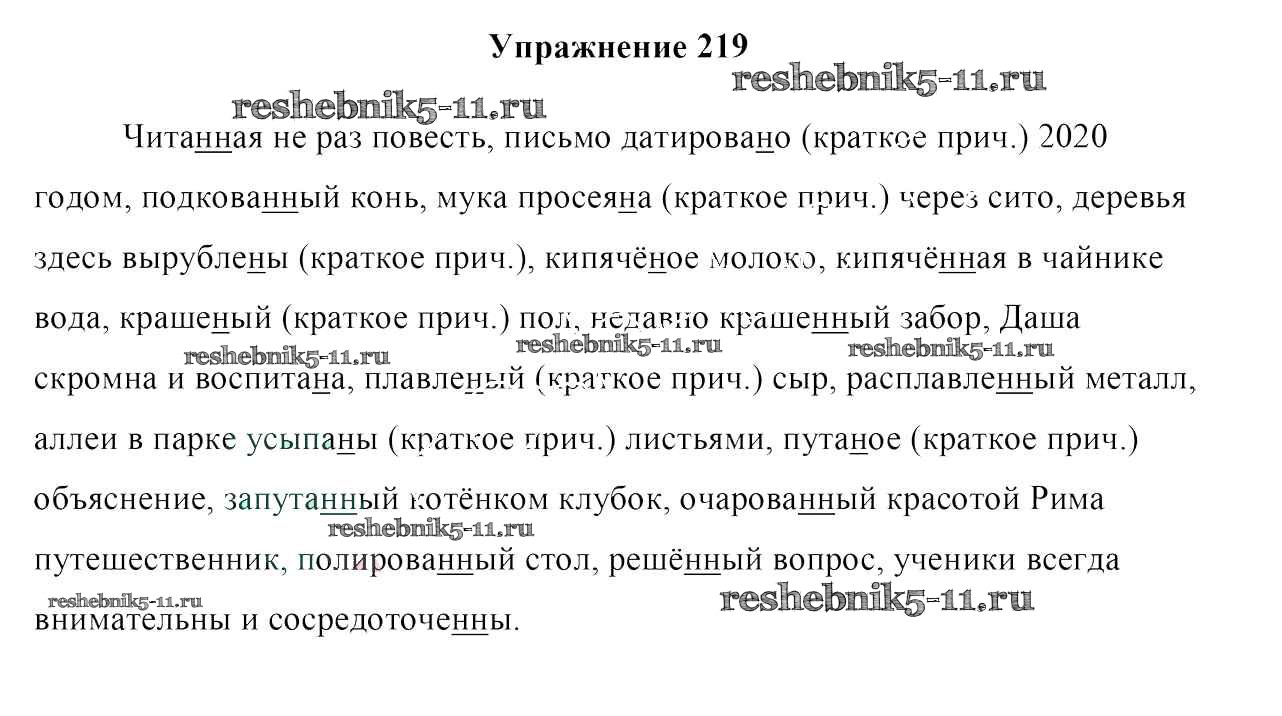 Готовая домашняя работа с ответами по Русскому языку за 7 класс Мурина, Волынец, Долбик Учебник Национальный институт образования 2015 ФГОС - Упражнения 219