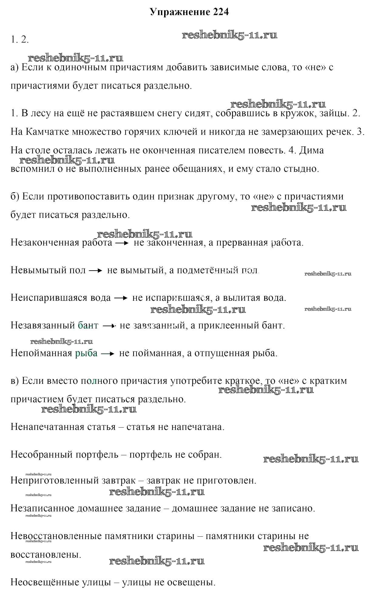 Готовая домашняя работа с ответами по Русскому языку за 7 класс Мурина, Волынец, Долбик Учебник Национальный институт образования 2015 ФГОС - Упражнения 224