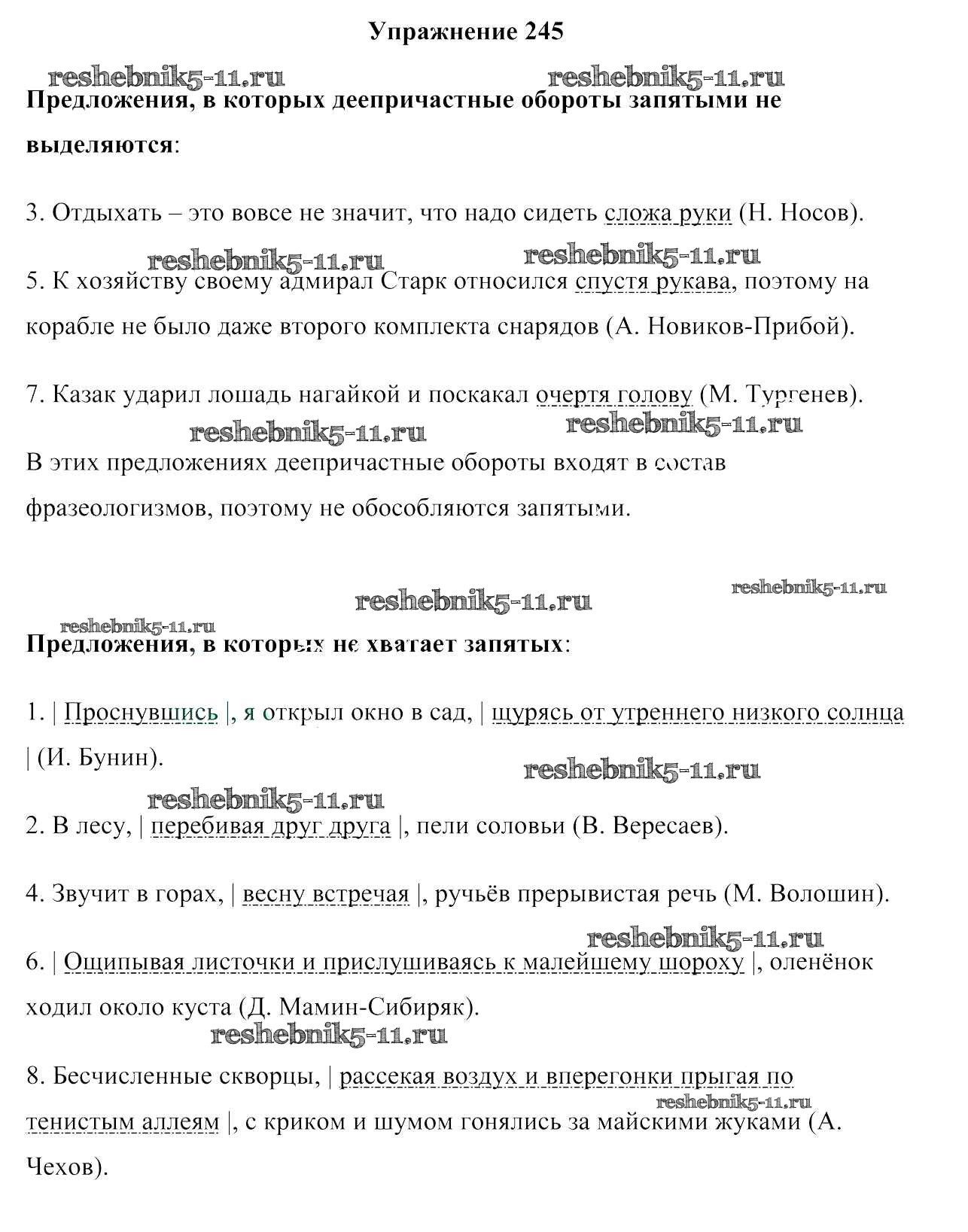Готовая домашняя работа с ответами по Русскому языку за 7 класс Мурина, Волынец, Долбик Учебник Национальный институт образования 2015 ФГОС - Упражнения 245