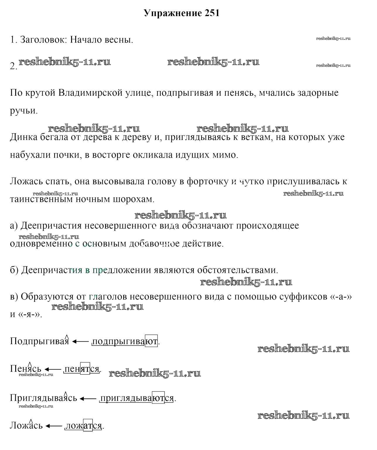 Готовая домашняя работа с ответами по Русскому языку за 7 класс Мурина, Волынец, Долбик Учебник Национальный институт образования 2015 ФГОС - Упражнения 251