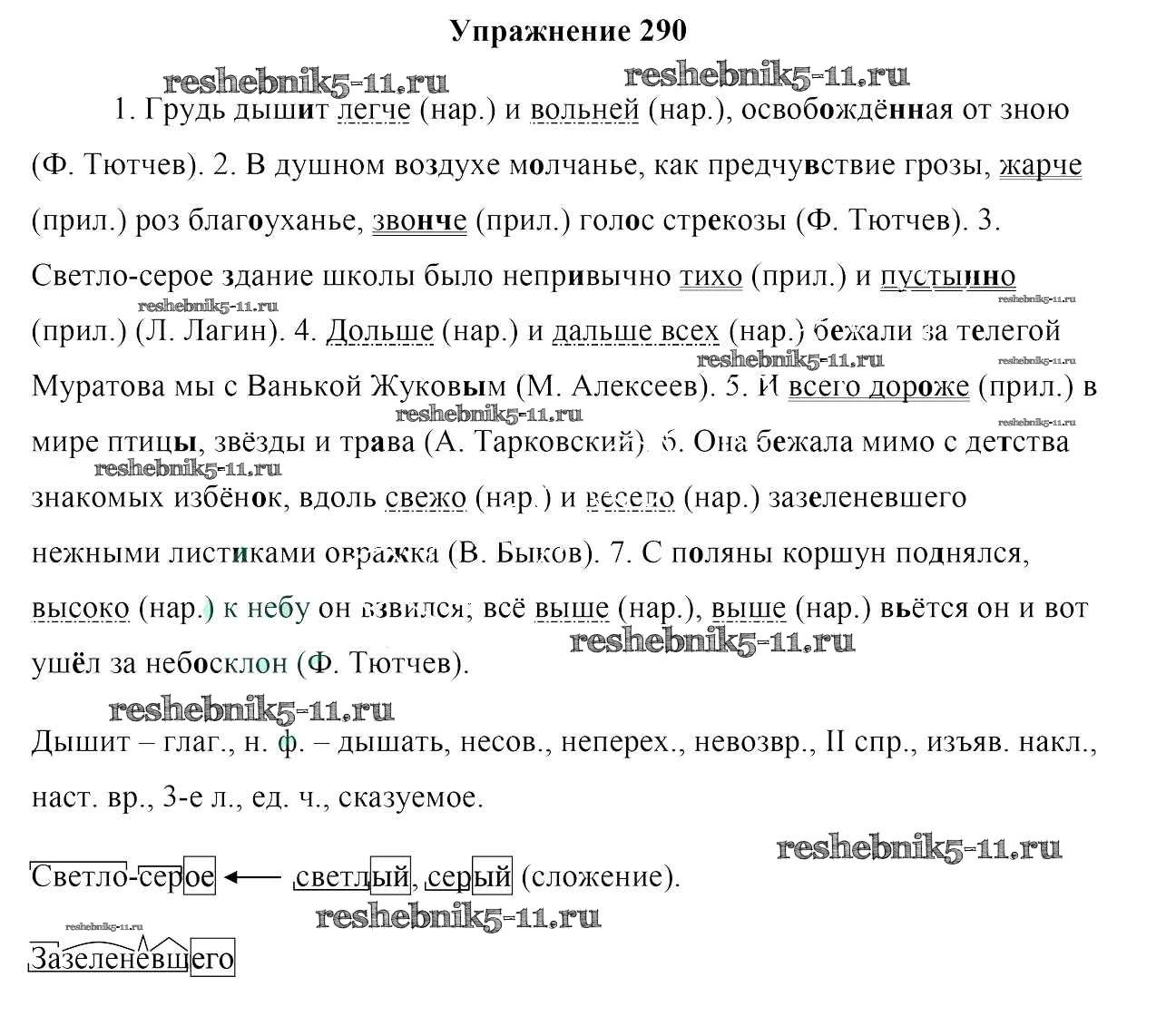 Готовая домашняя работа с ответами по Русскому языку за 7 класс Мурина, Волынец, Долбик Учебник Национальный институт образования 2015 ФГОС - Упражнения 290