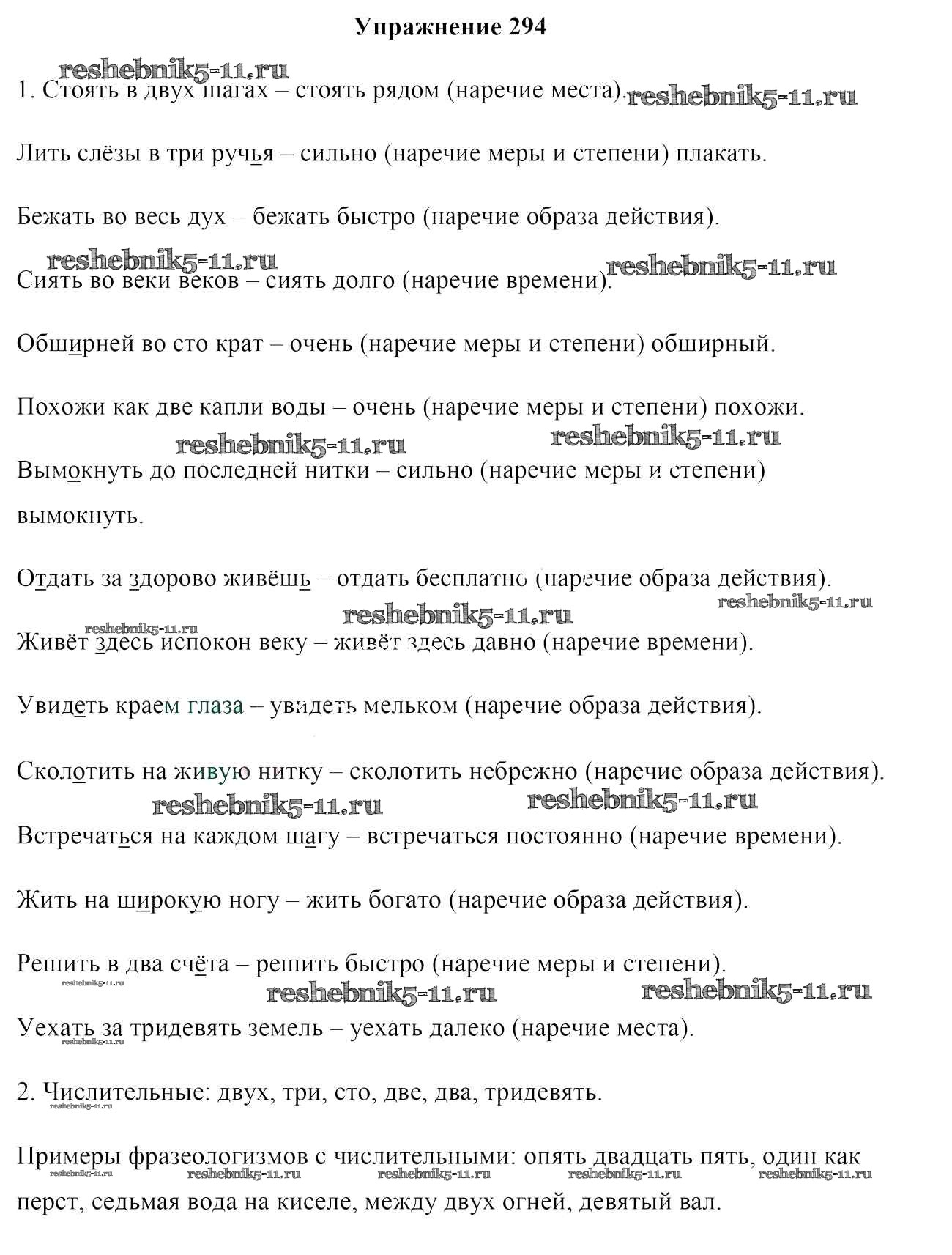 Готовая домашняя работа с ответами по Русскому языку за 7 класс Мурина, Волынец, Долбик Учебник Национальный институт образования 2015 ФГОС - Упражнения 294