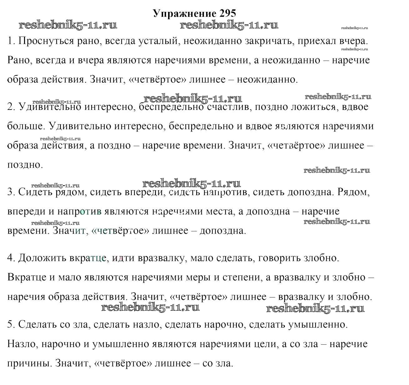 Готовая домашняя работа с ответами по Русскому языку за 7 класс Мурина, Волынец, Долбик Учебник Национальный институт образования 2015 ФГОС - Упражнения 295