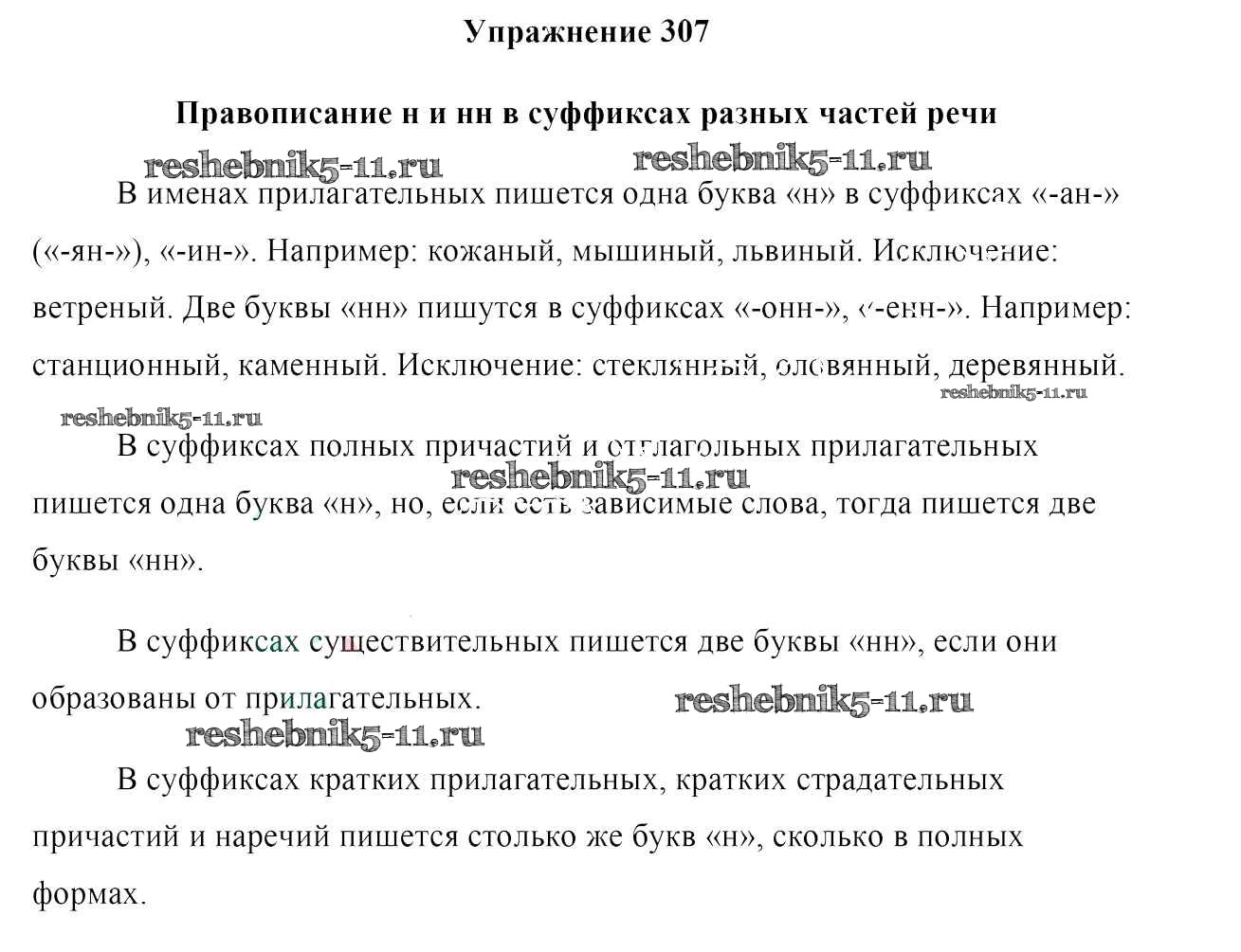 Готовая домашняя работа с ответами по Русскому языку за 7 класс Мурина, Волынец, Долбик Учебник Национальный институт образования 2015 ФГОС - Упражнения 307