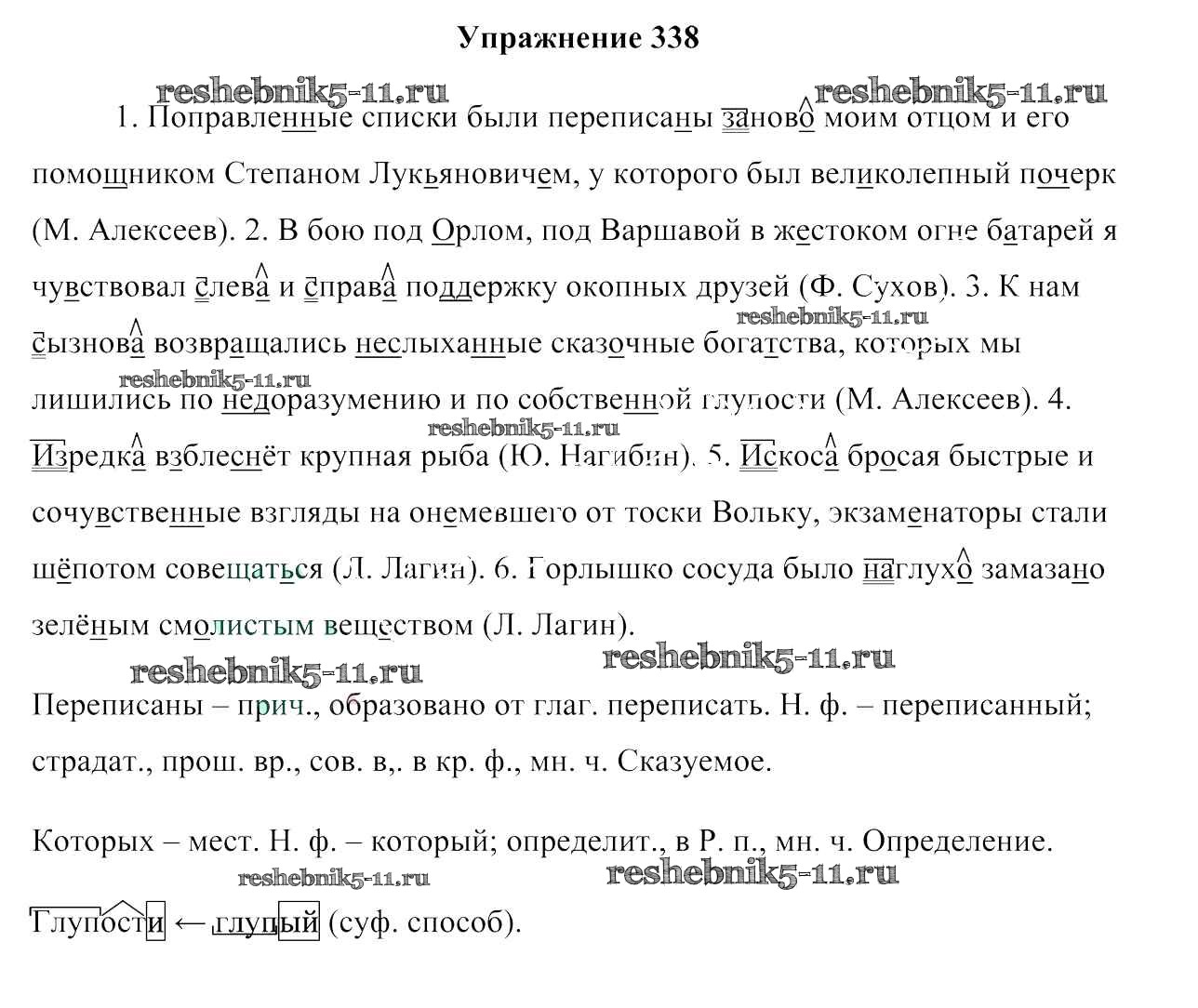 Готовая домашняя работа с ответами по Русскому языку за 7 класс Мурина, Волынец, Долбик Учебник Национальный институт образования 2015 ФГОС - Упражнения 338