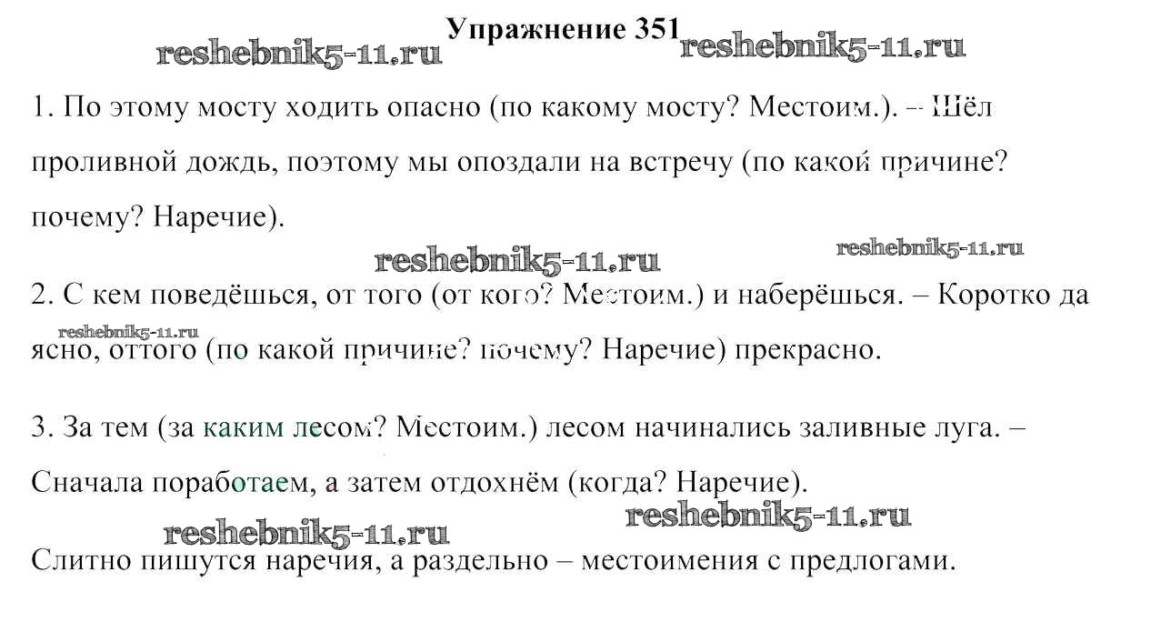 Готовая домашняя работа с ответами по Русскому языку за 7 класс Мурина, Волынец, Долбик Учебник Национальный институт образования 2015 ФГОС - Упражнения 351