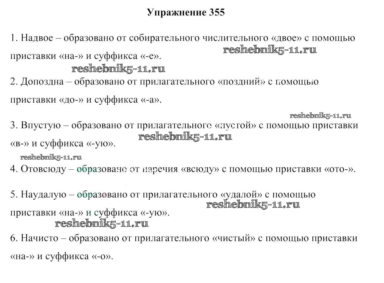 Готовая домашняя работа с ответами по Русскому языку за 7 класс Мурина, Волынец, Долбик Учебник Национальный институт образования 2015 ФГОС - Упражнения 355