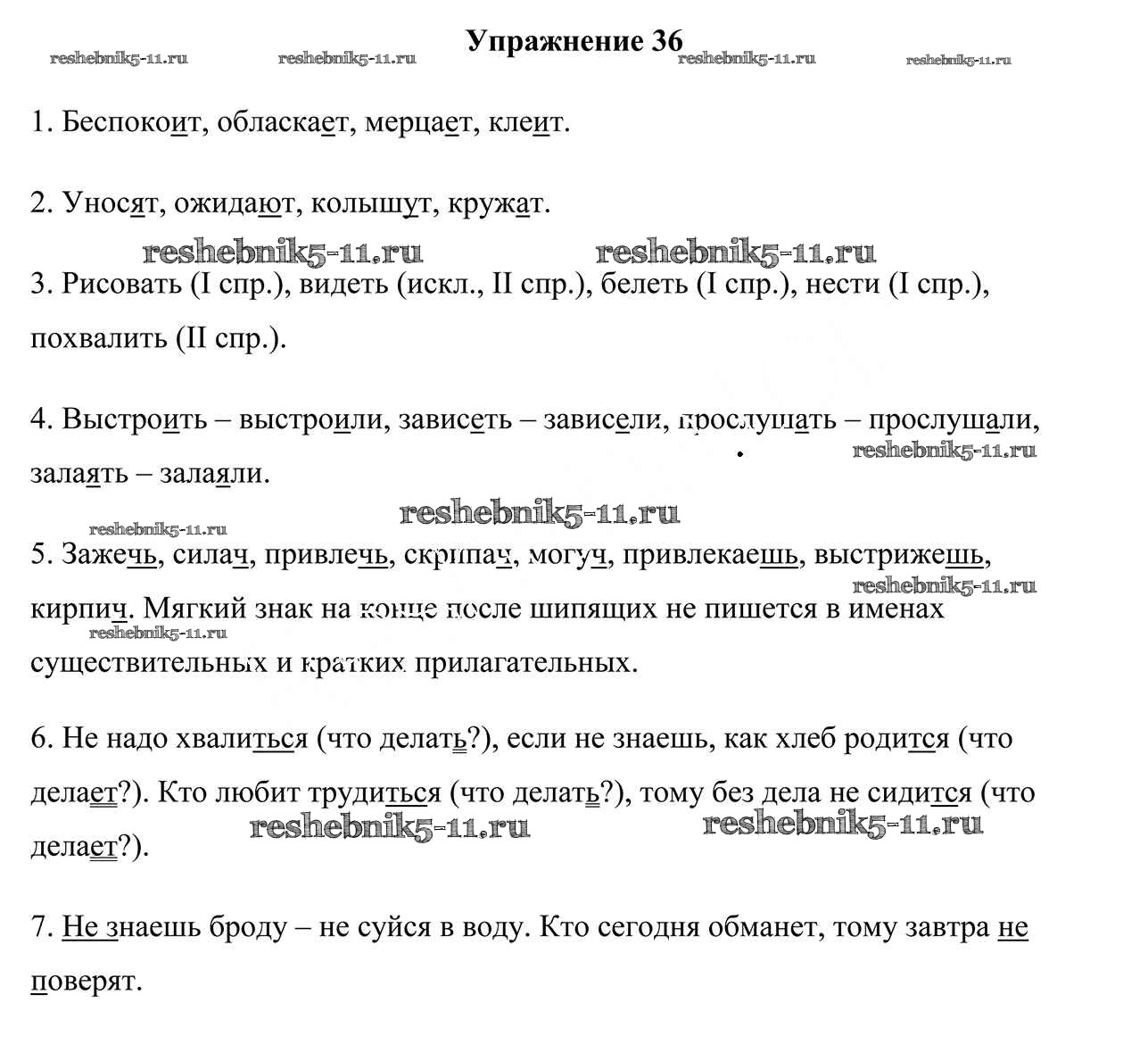 Готовая домашняя работа с ответами по Русскому языку за 7 класс Мурина, Волынец, Долбик Учебник Национальный институт образования 2015 ФГОС - Упражнения 36