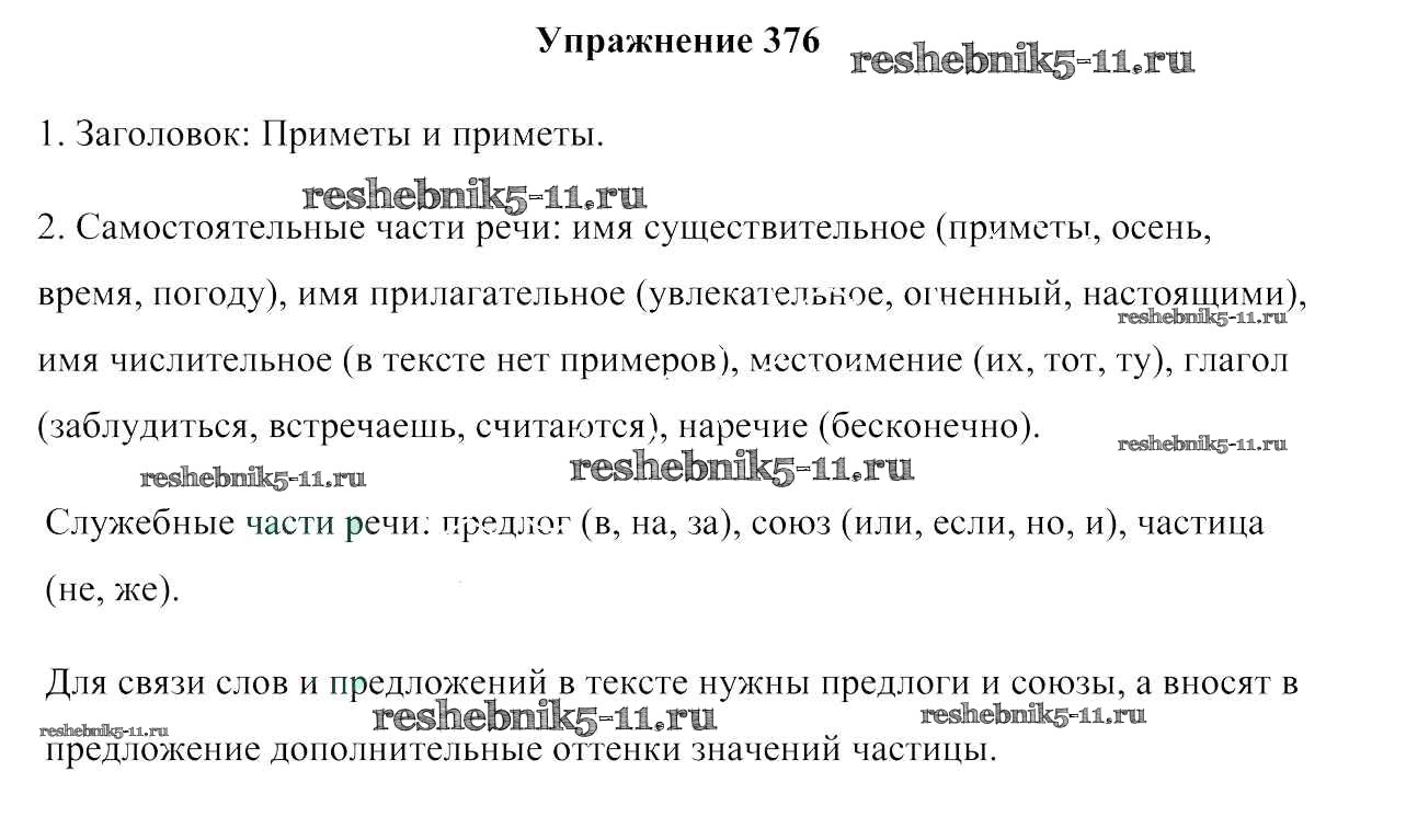 Готовая домашняя работа с ответами по Русскому языку за 7 класс Мурина, Волынец, Долбик Учебник Национальный институт образования 2015 ФГОС - Упражнения 376