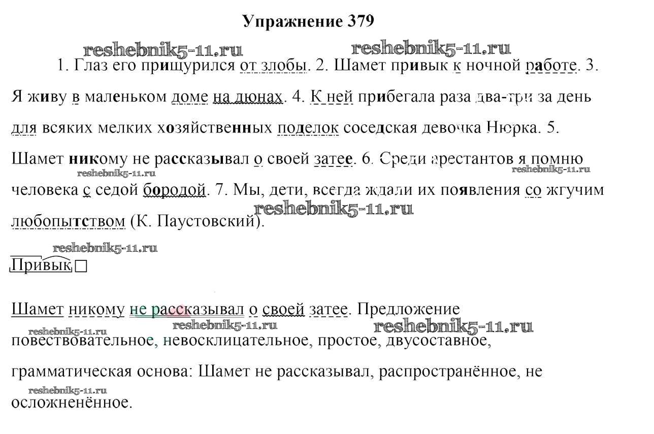 Готовая домашняя работа с ответами по Русскому языку за 7 класс Мурина, Волынец, Долбик Учебник Национальный институт образования 2015 ФГОС - Упражнения 379