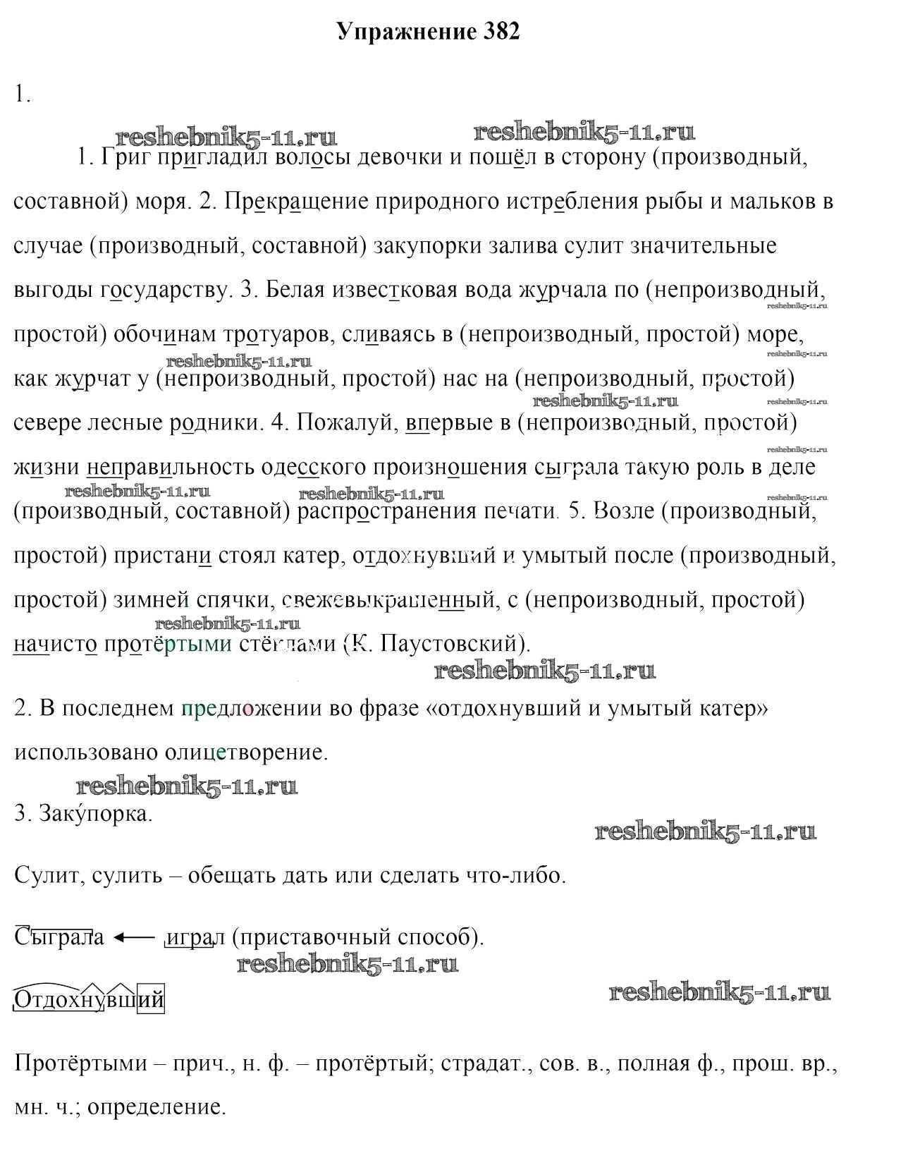 Готовая домашняя работа с ответами по Русскому языку за 7 класс Мурина, Волынец, Долбик Учебник Национальный институт образования 2015 ФГОС - Упражнения 382