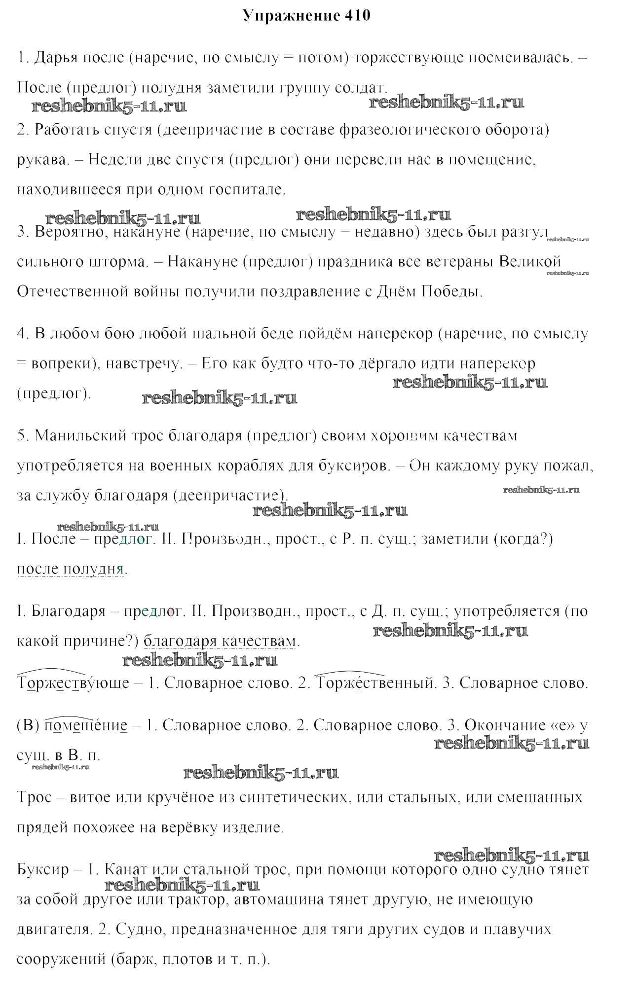 Готовая домашняя работа с ответами по Русскому языку за 7 класс Мурина, Волынец, Долбик Учебник Национальный институт образования 2015 ФГОС - Упражнения 410