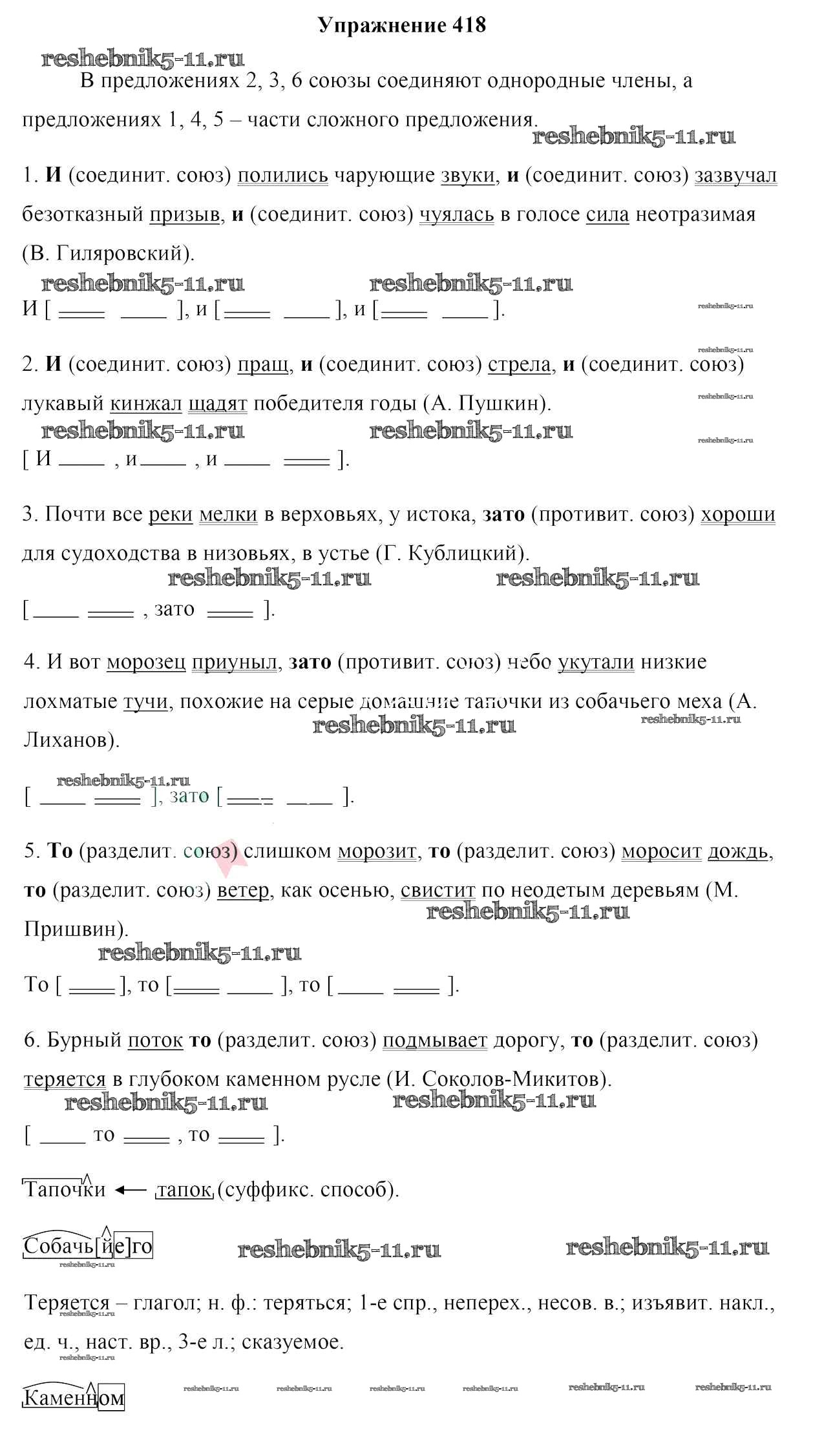 Готовая домашняя работа с ответами по Русскому языку за 7 класс Мурина, Волынец, Долбик Учебник Национальный институт образования 2015 ФГОС - Упражнения 418