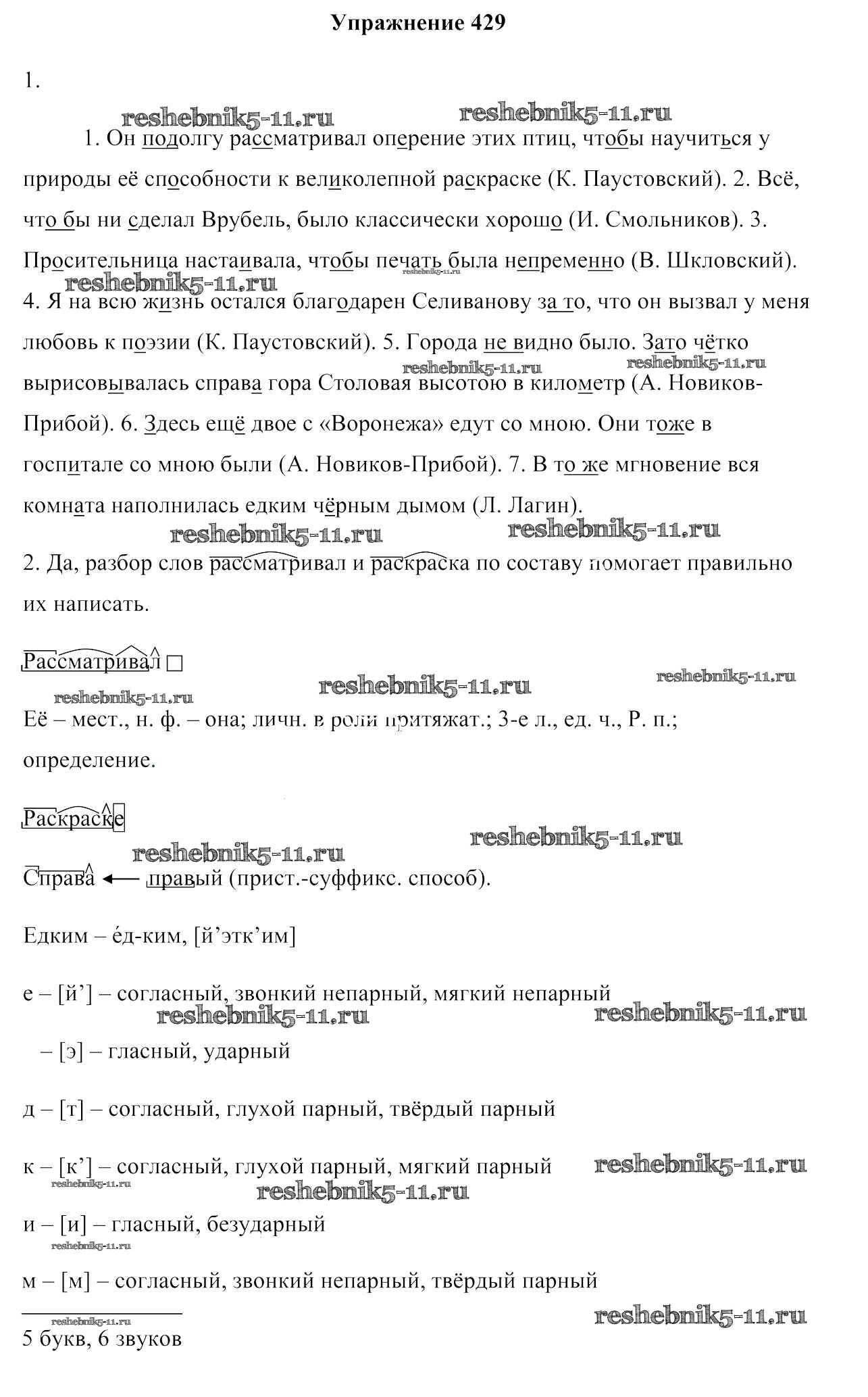 Готовая домашняя работа с ответами по Русскому языку за 7 класс Мурина, Волынец, Долбик Учебник Национальный институт образования 2015 ФГОС - Упражнения 429