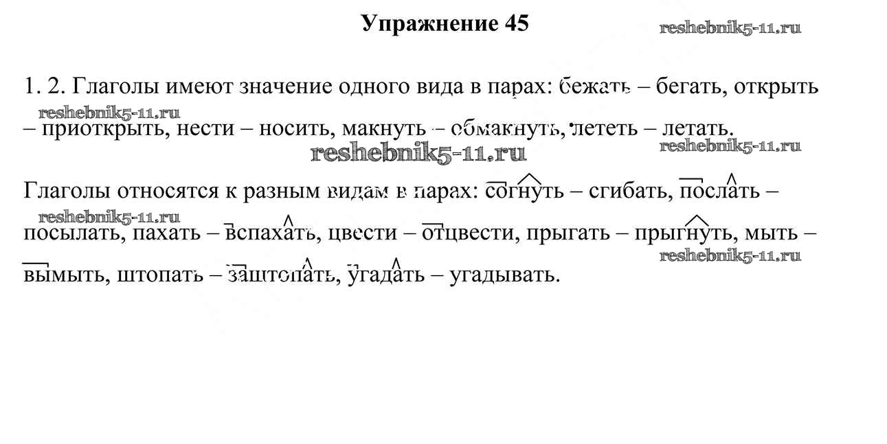 Готовая домашняя работа с ответами по Русскому языку за 7 класс Мурина, Волынец, Долбик Учебник Национальный институт образования 2015 ФГОС - Упражнения 45