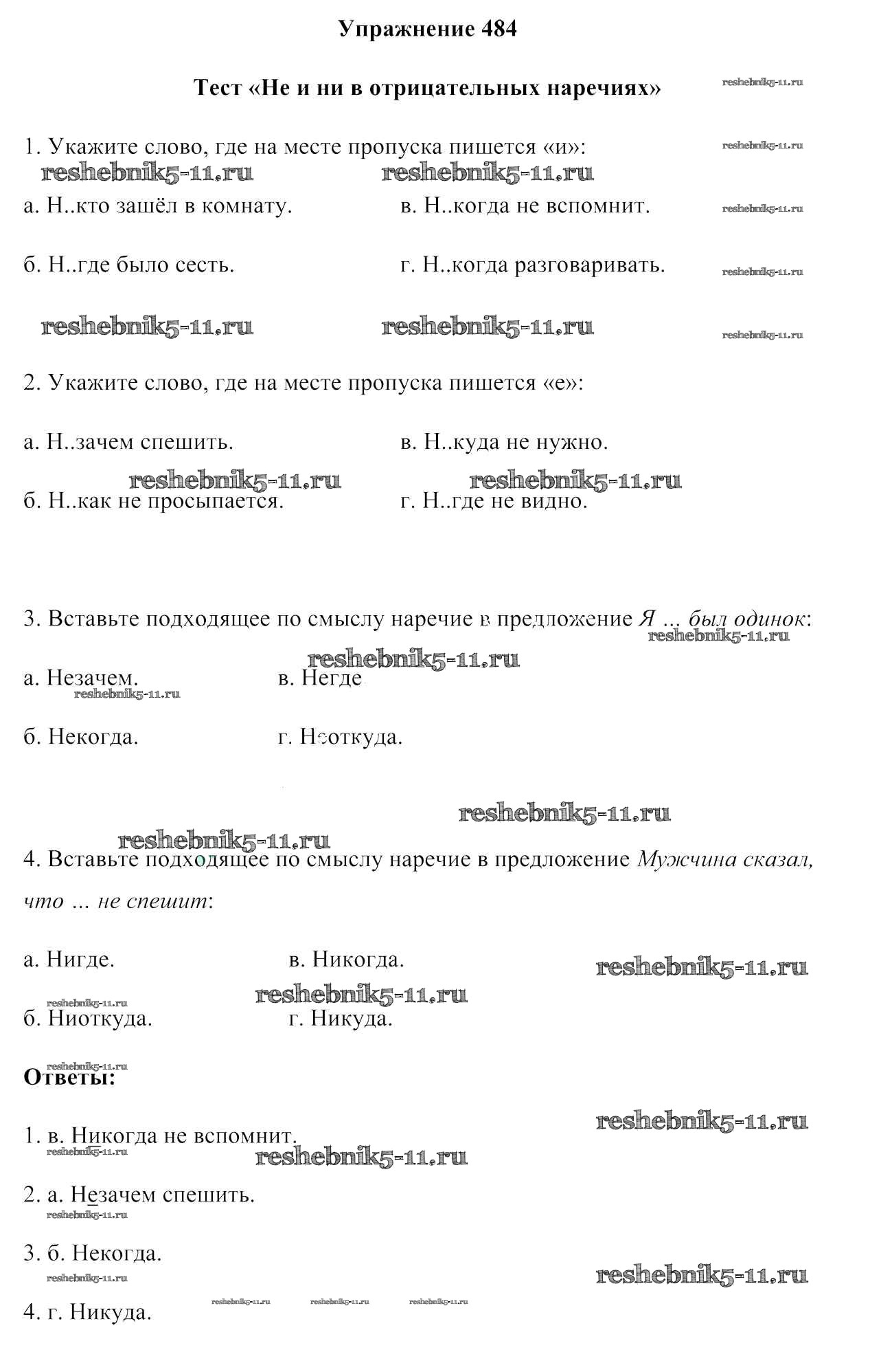 Русский язык за 7 класс Мурина Учебник Национальный институт образования упражнение № 484